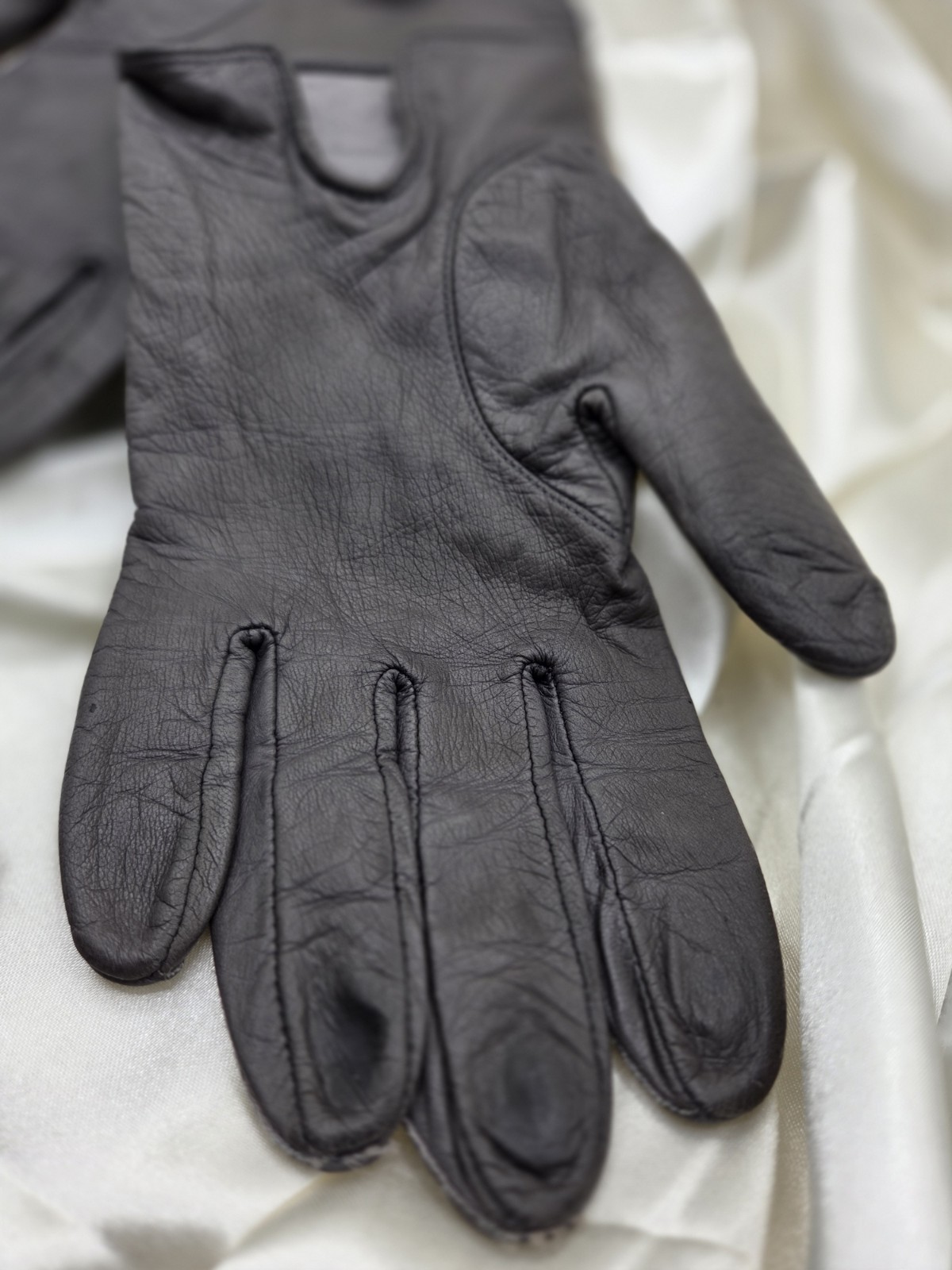как выглядит Vintage Aris Leather Gloves Silk Lined Gold Hardware Accents Grey Size 7.5 фото