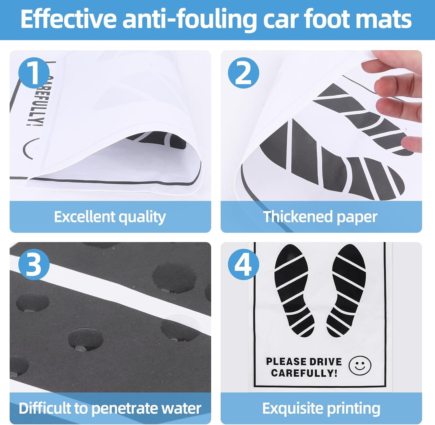 100 Pcs Paper Car Floor Mats - 20x16 Disposable Auto Floor Pads with Footprint