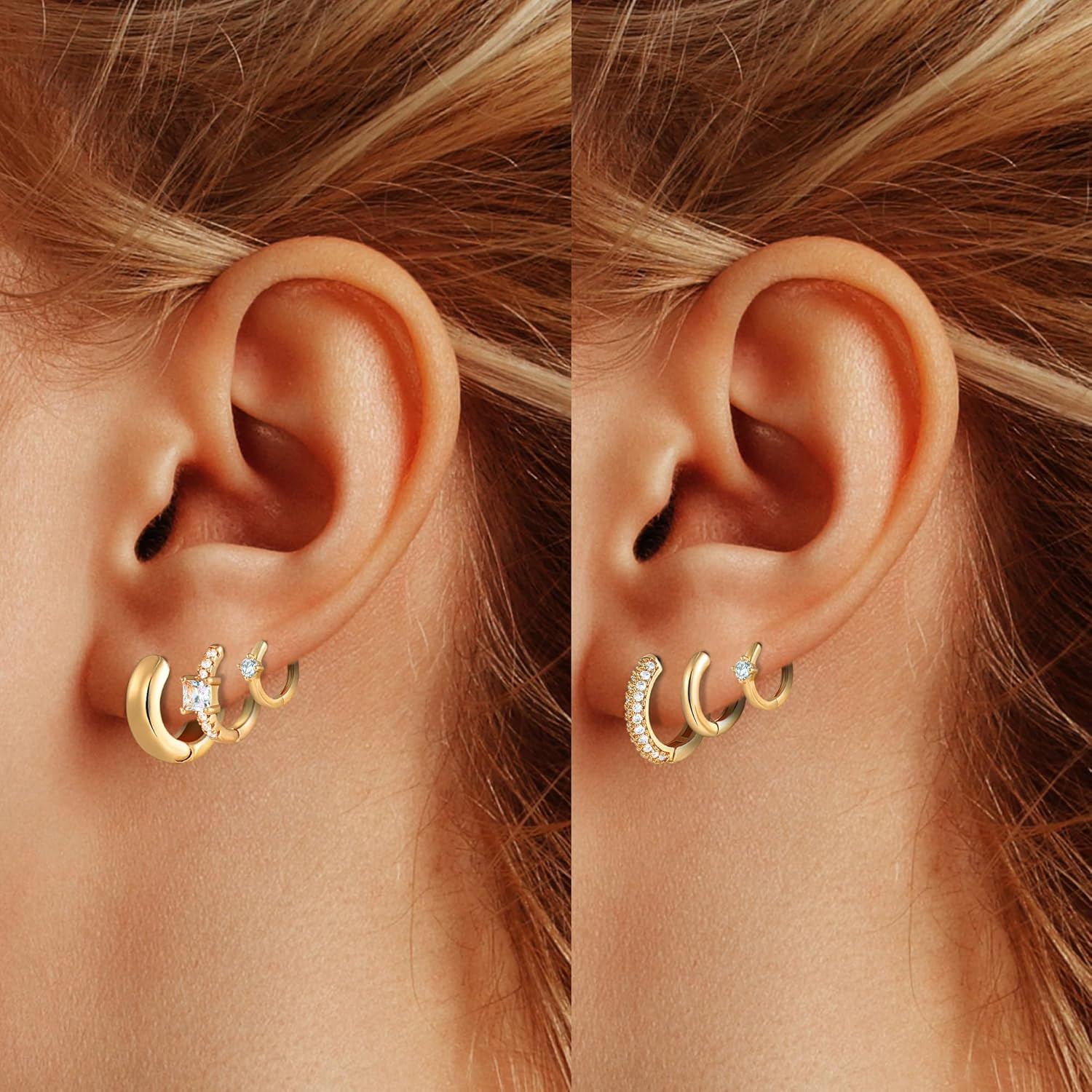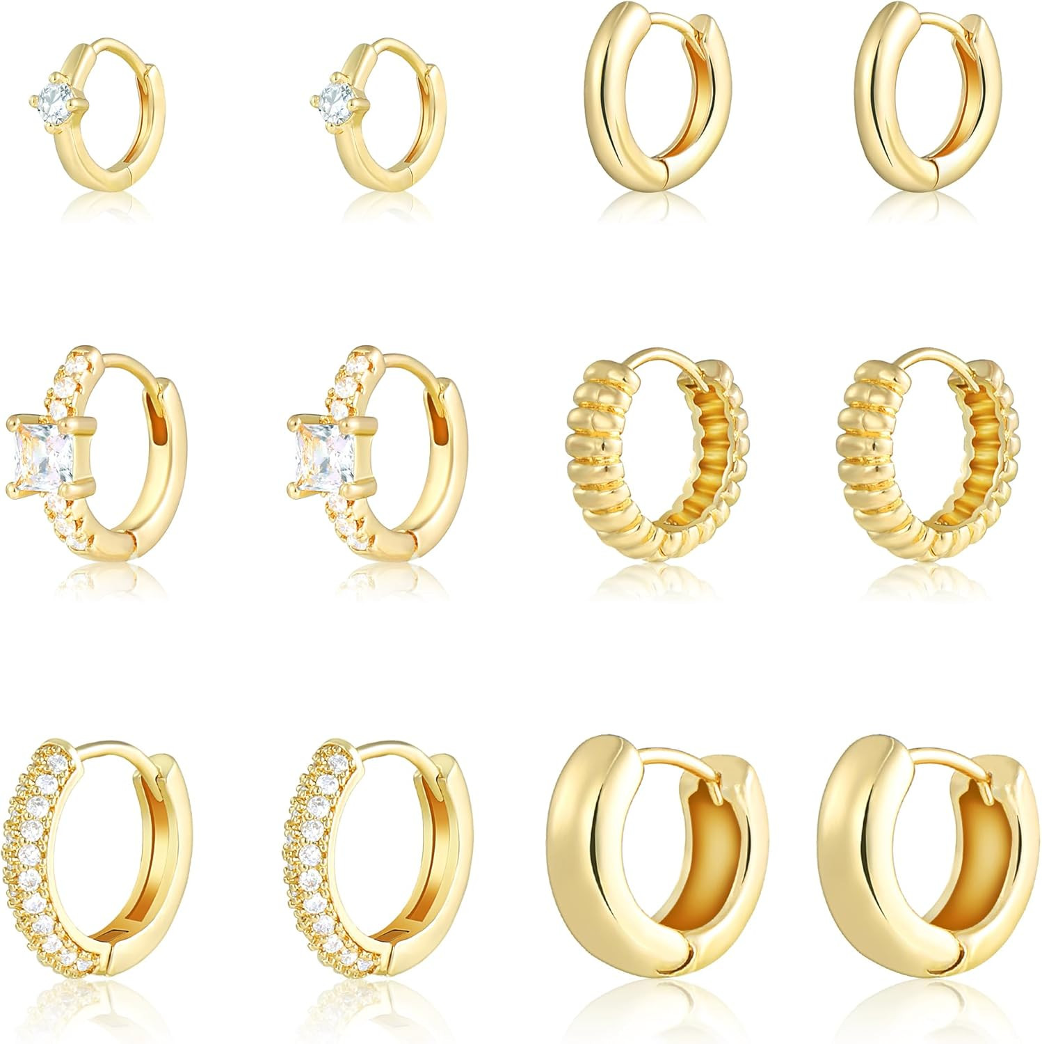 Small Gold Hoop Earrings Set for Women, 6 Pairs 14K Gold Plated Hypoallergenic L