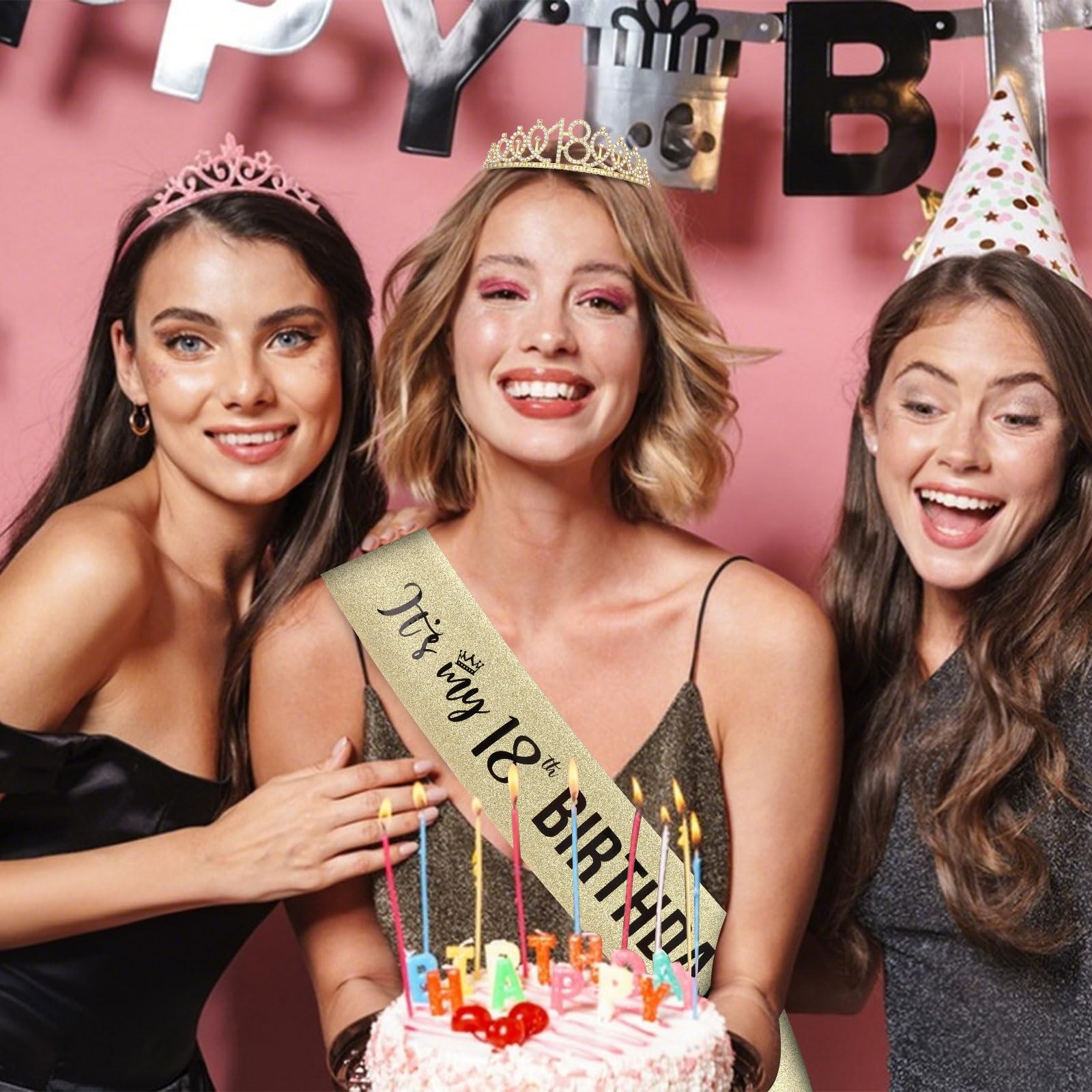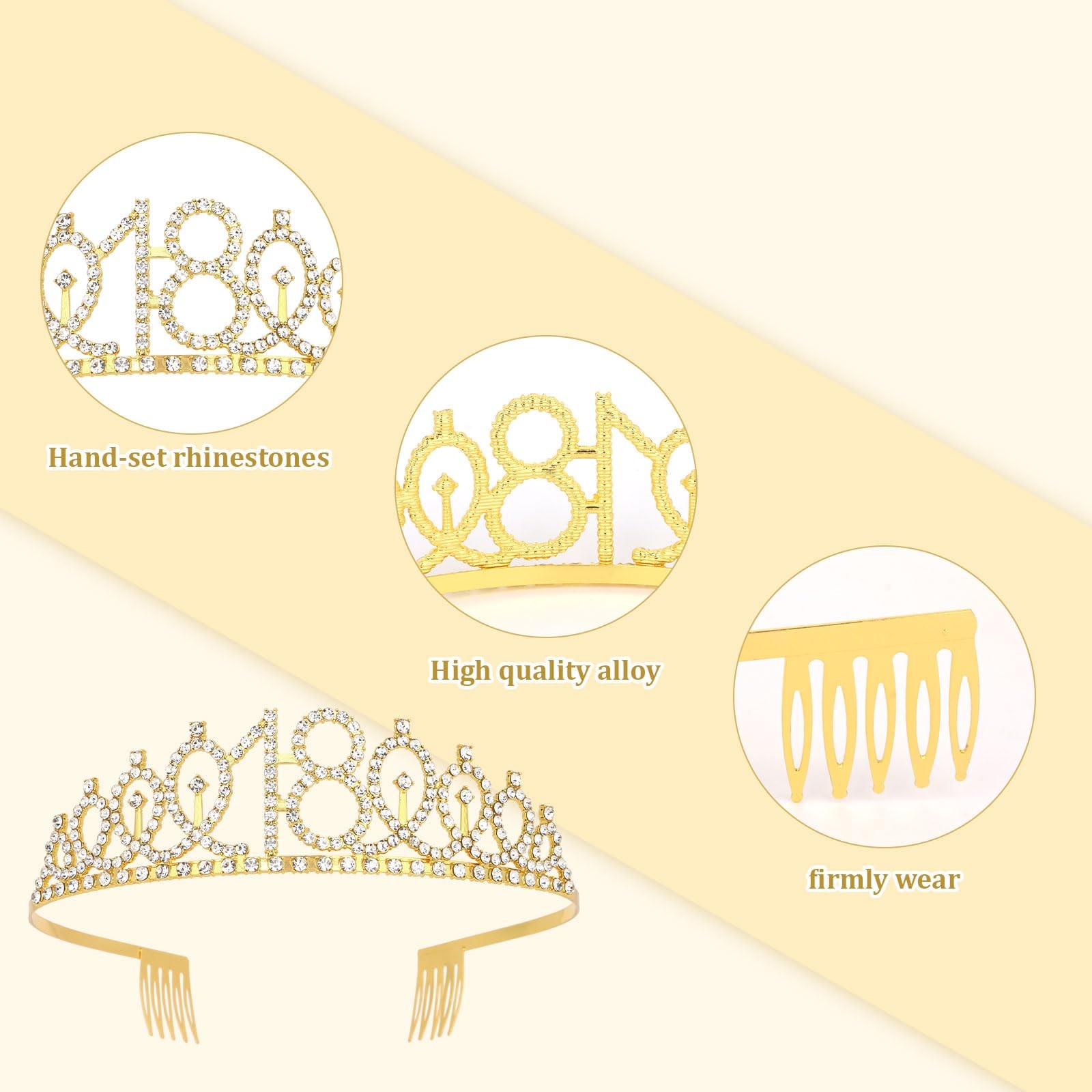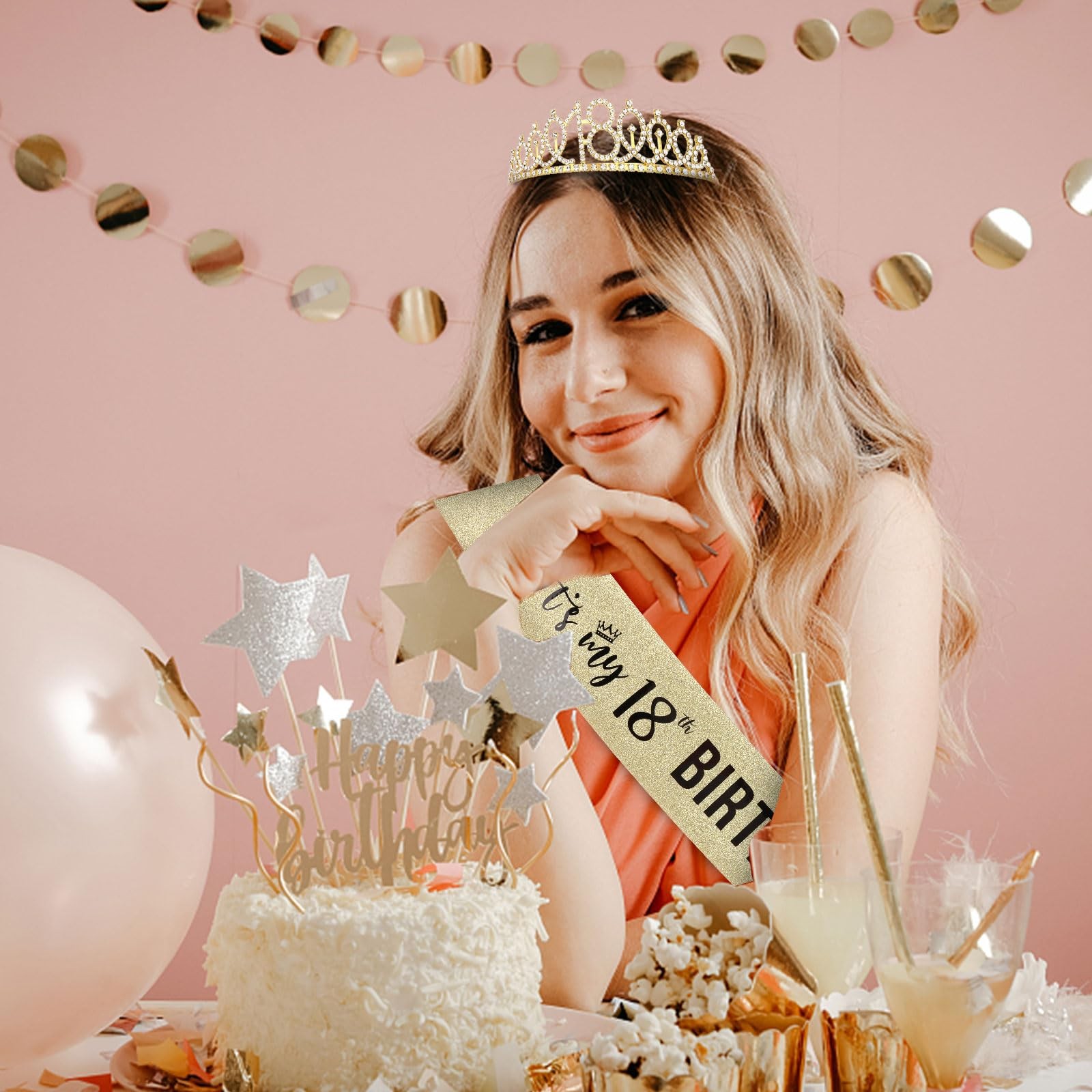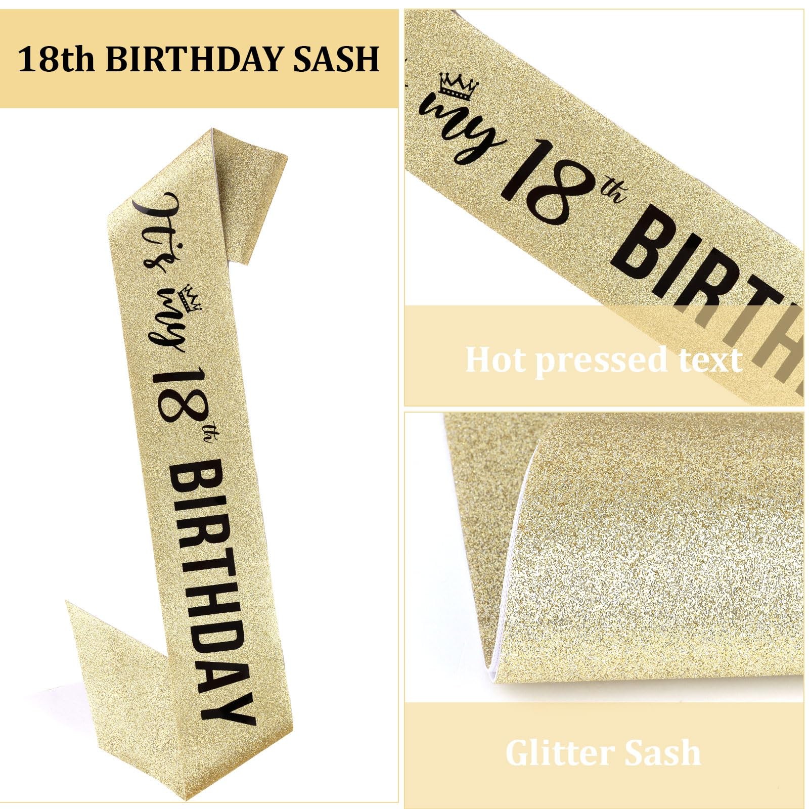 Semato 18th Birthday Decorations for Girls Crown and Sash gold