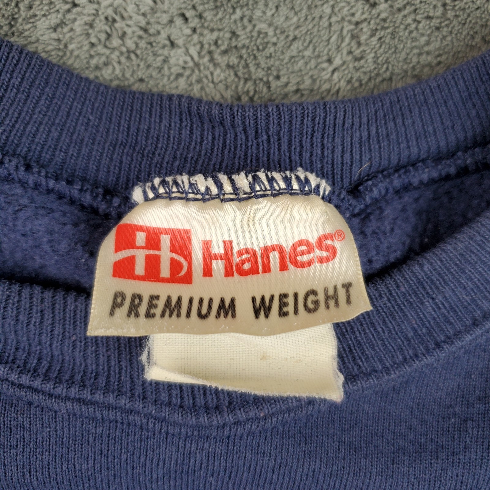 Hanes Premium Weight Sweatshirt Mens L Blue USA Blank Pullover Fleece Crew Vtg