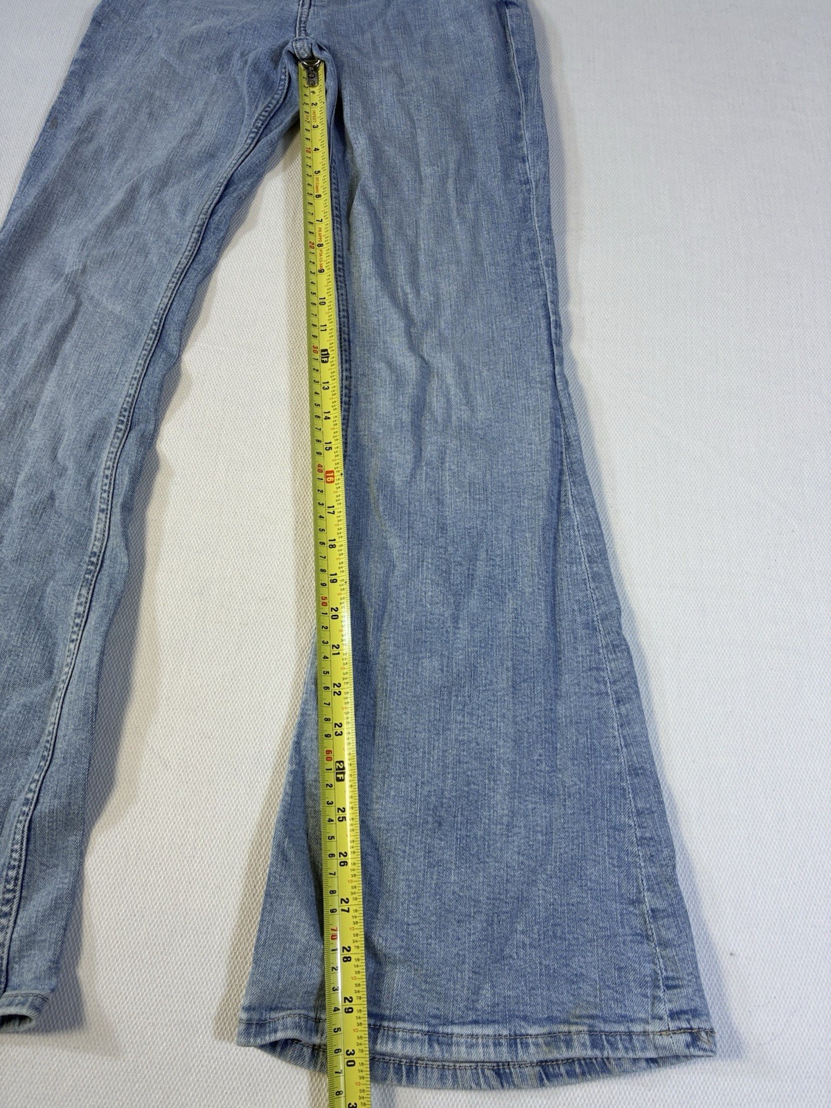 как выглядит Bershka High Waisted Flare Jeans Light Wash Blue Denim Womens Size 6 USA 28 фото
