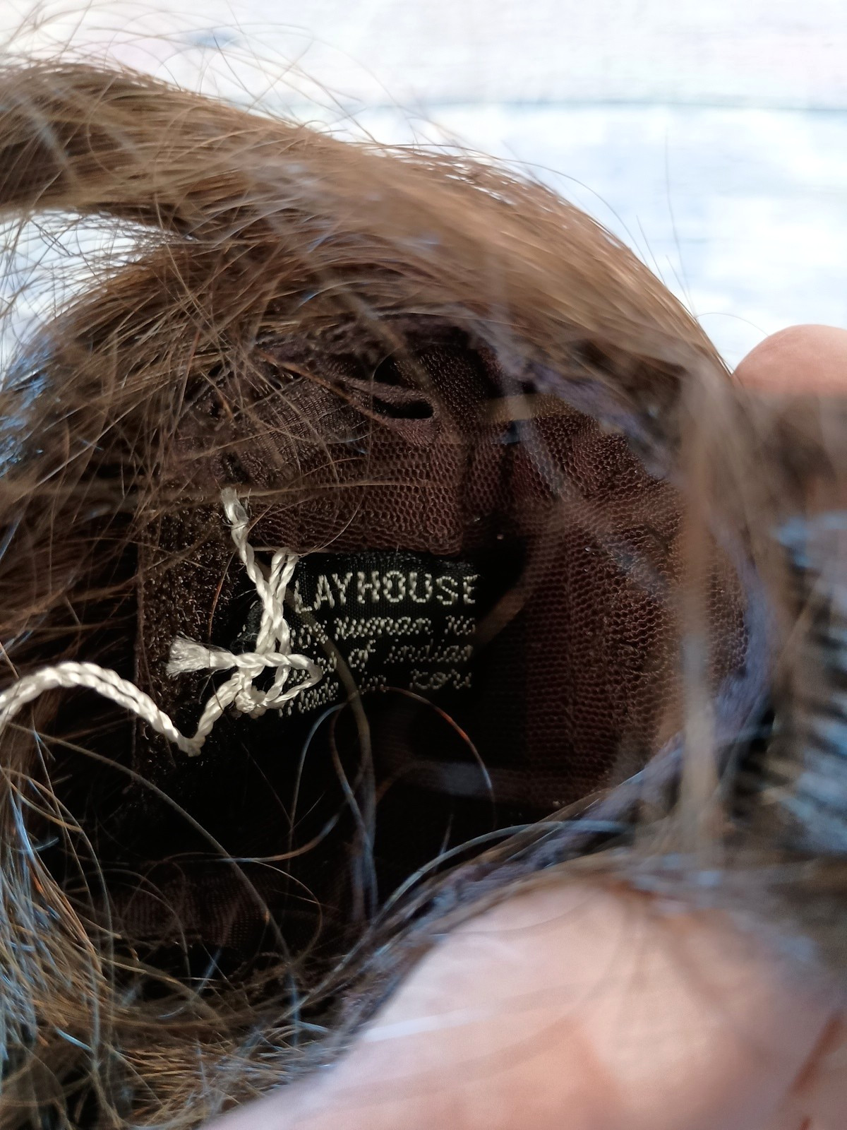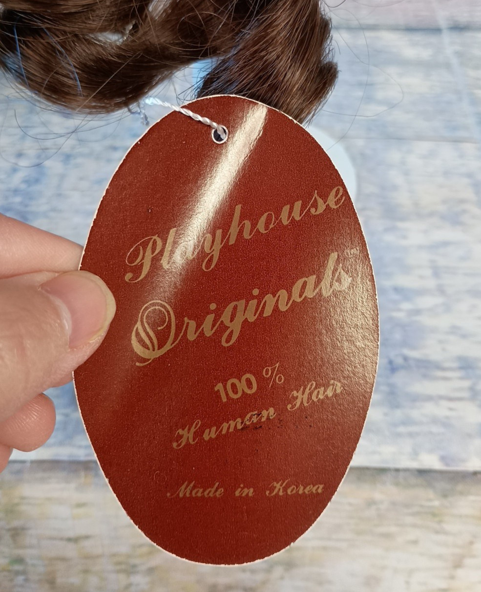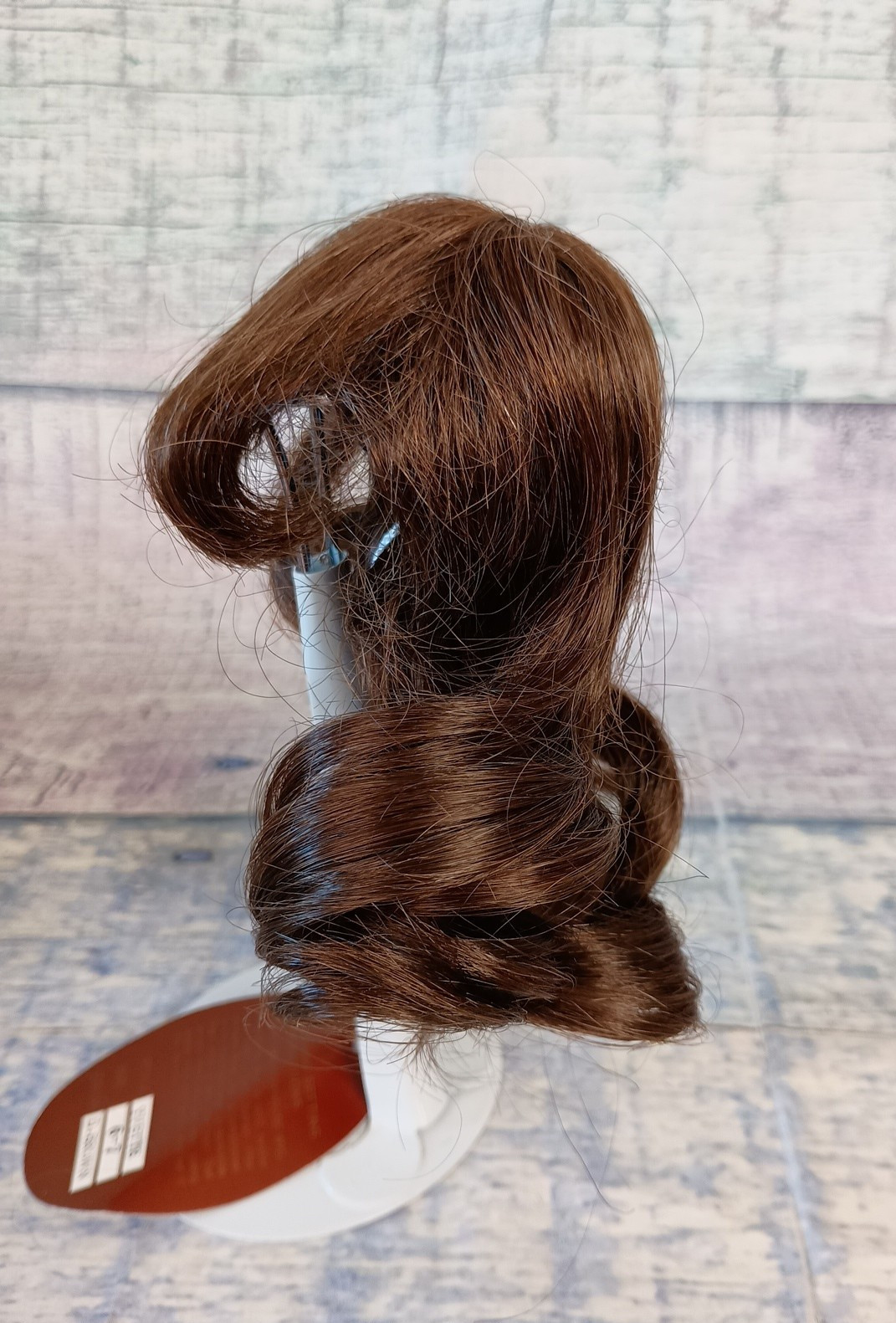 как выглядит Playhouse YVETTE Doll Wig Human Hair Size 6-7 Dark Brown Long Curls and Bangs фото