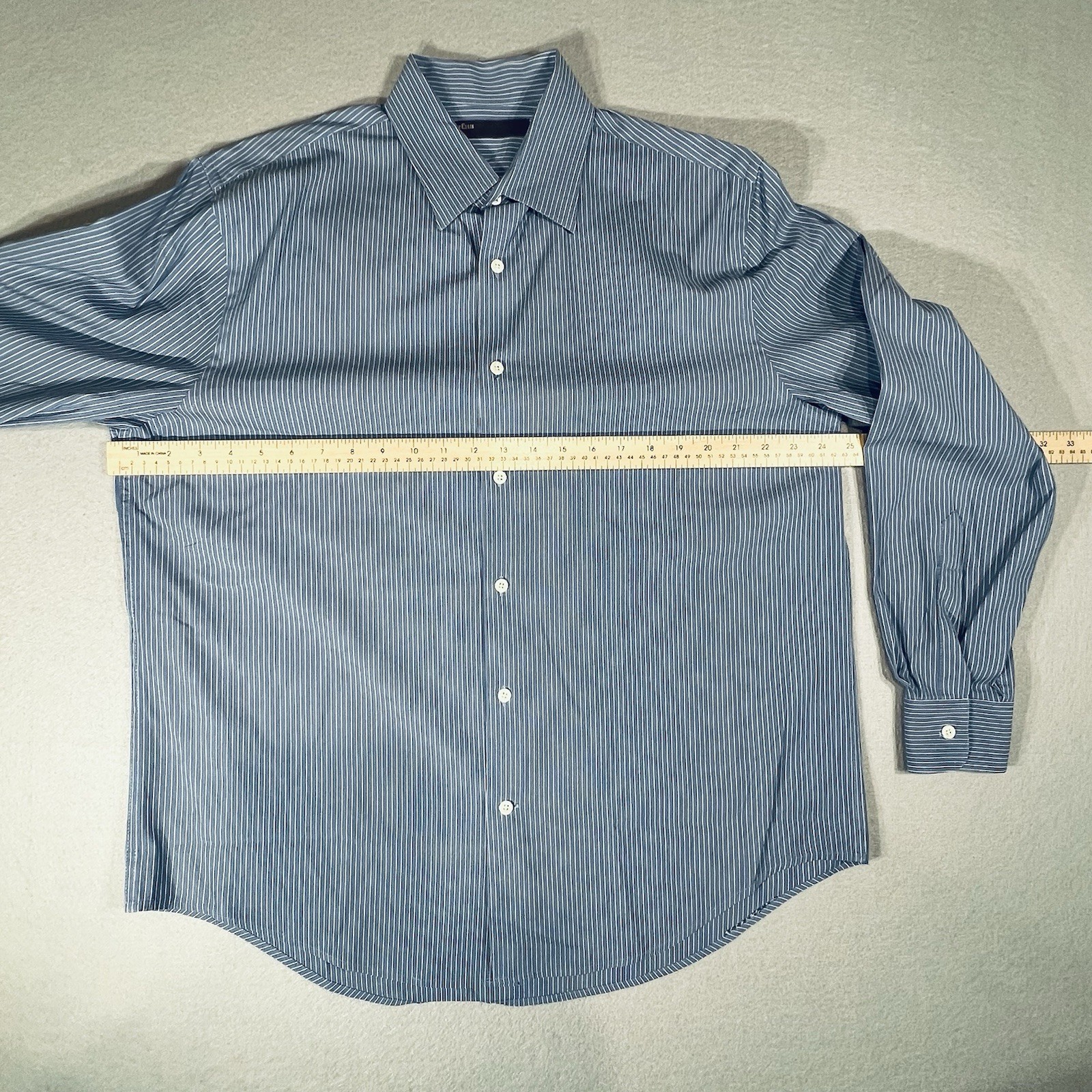 как выглядит Perry Ellis Mens Large L Long Sleeve Blue/White Stripe Button Down Dress Shirt фото