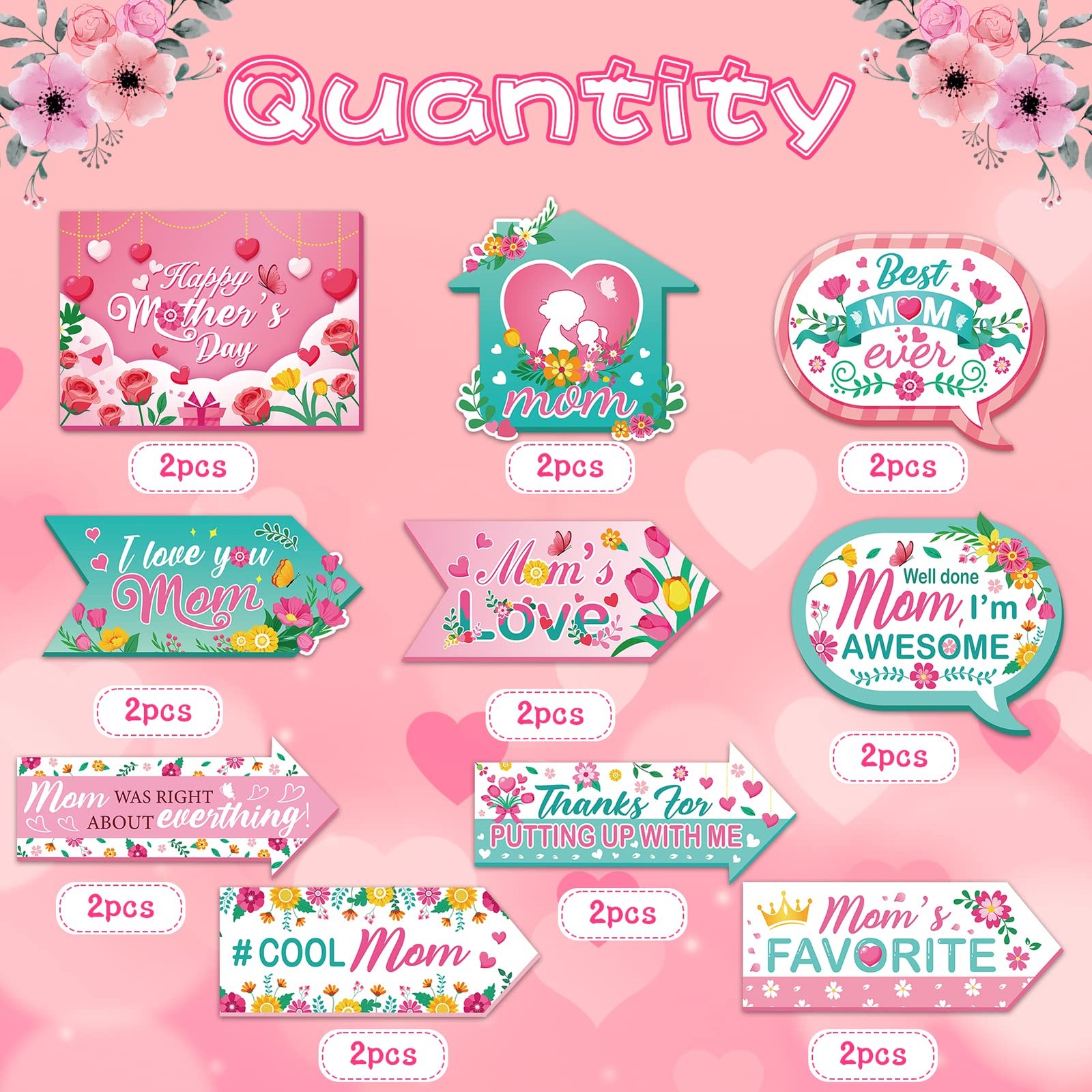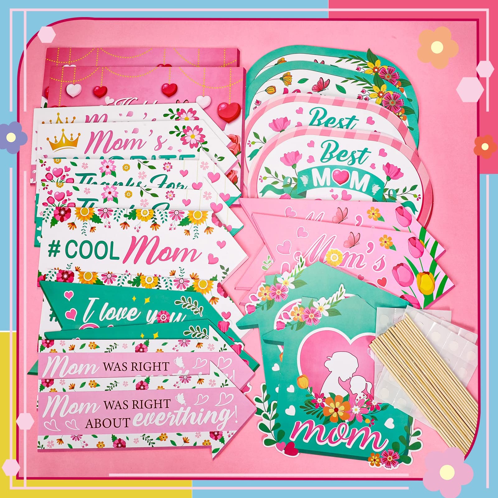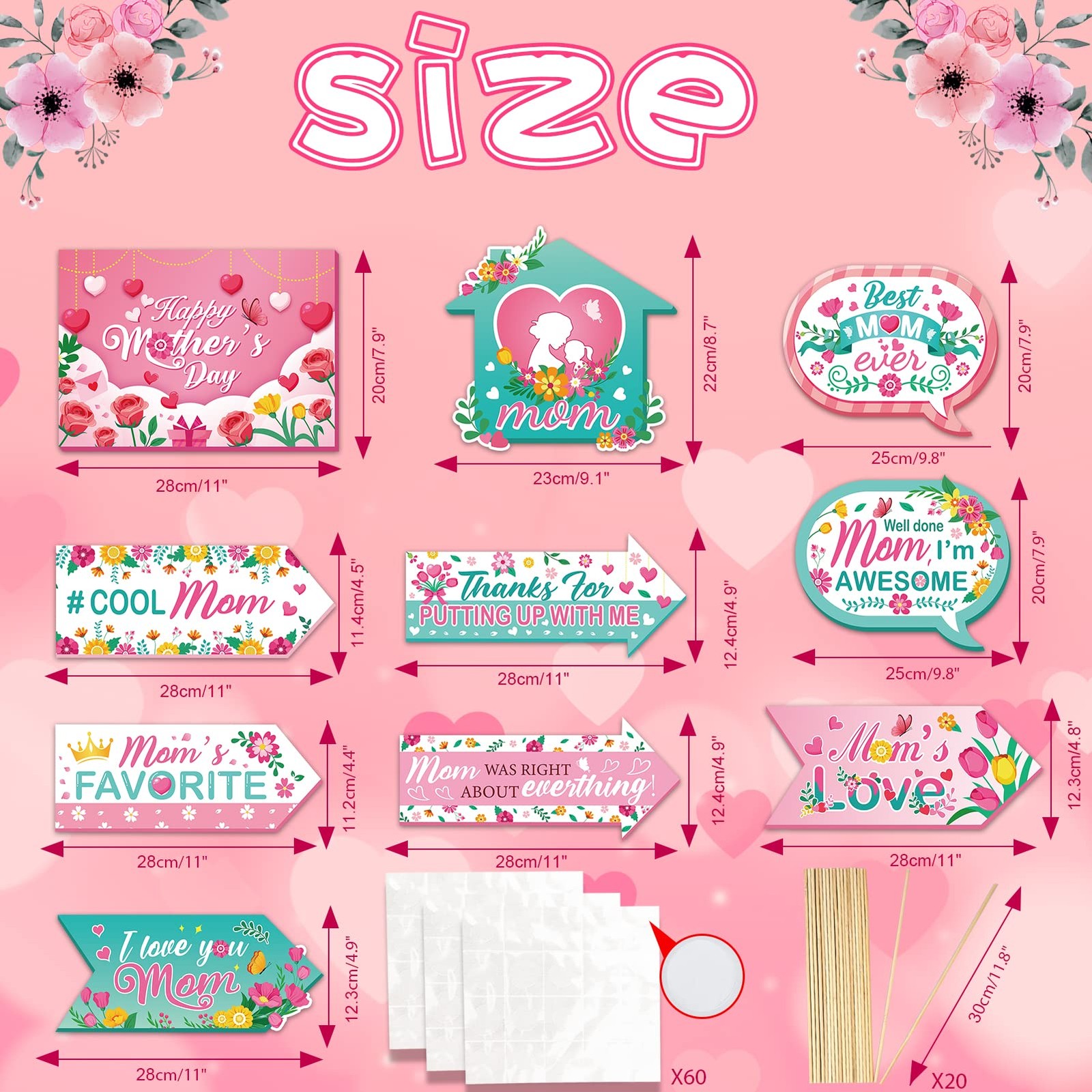 как выглядит 20pcs Happy Mothers Day Party Signs, Colorful Floral Mothers Day Directional S фото