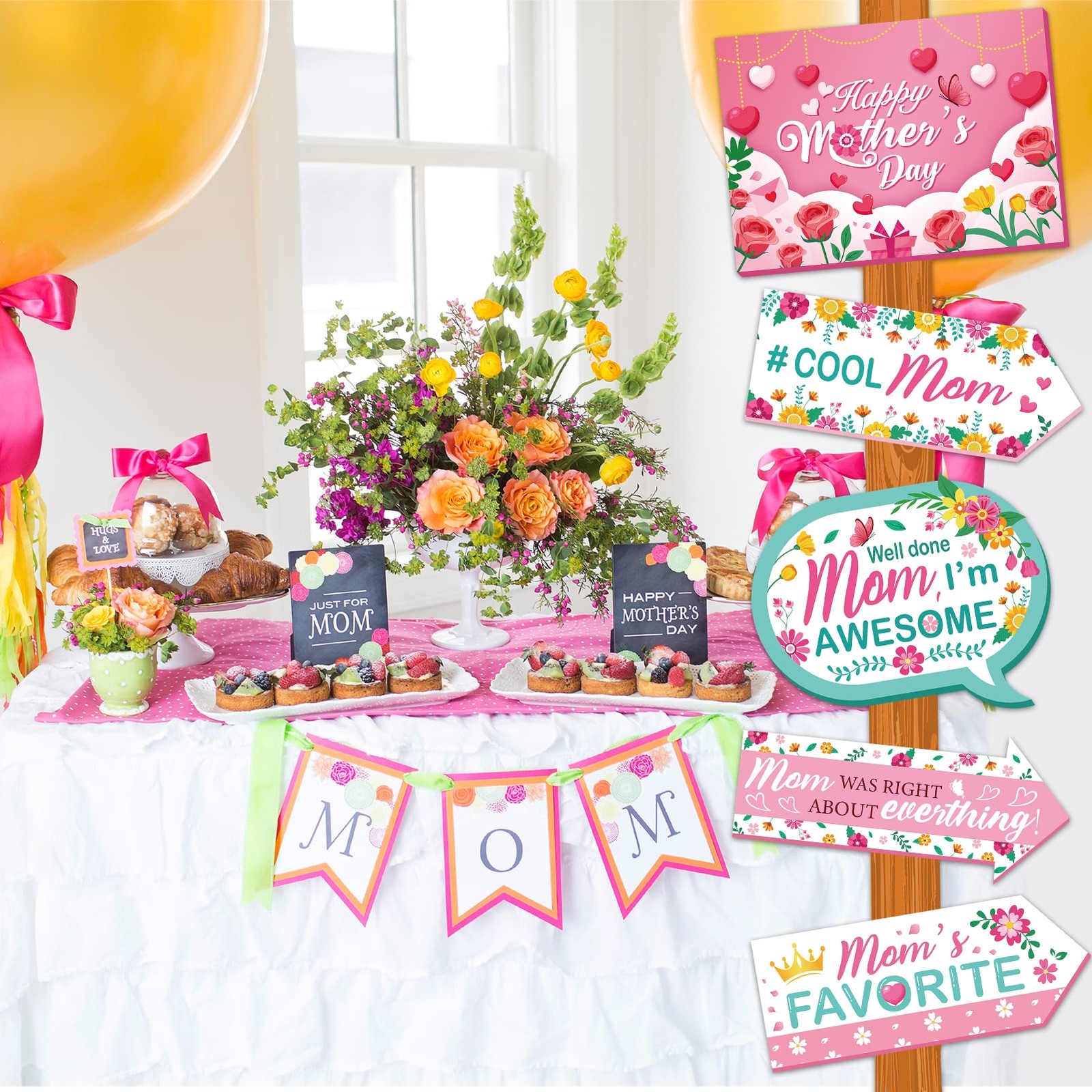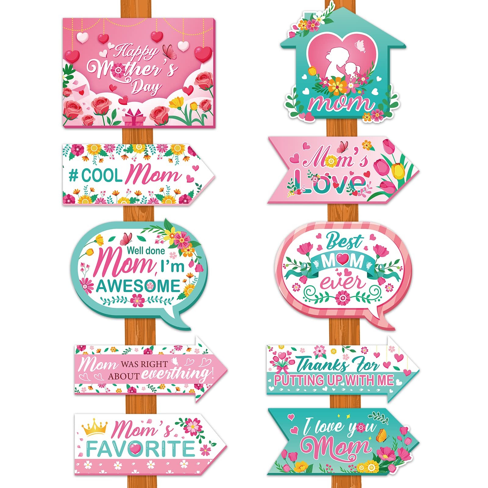 20pcs Happy Mother's Day Party Signs, Colorful Floral Mother's Day Directional S