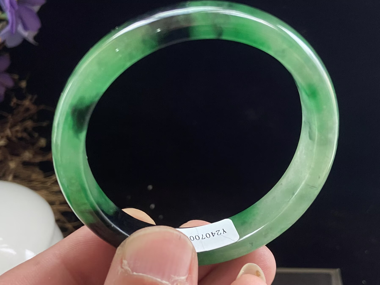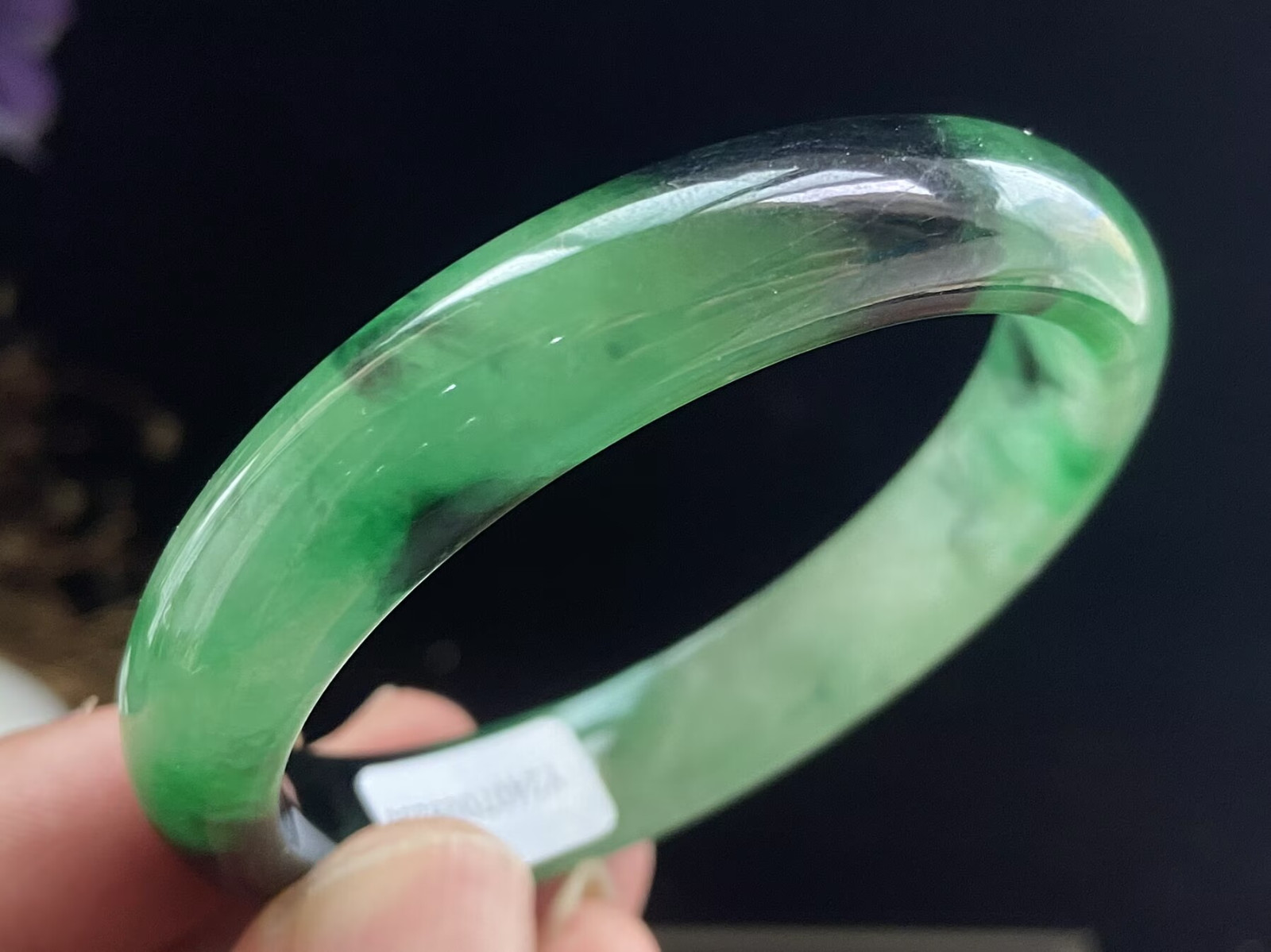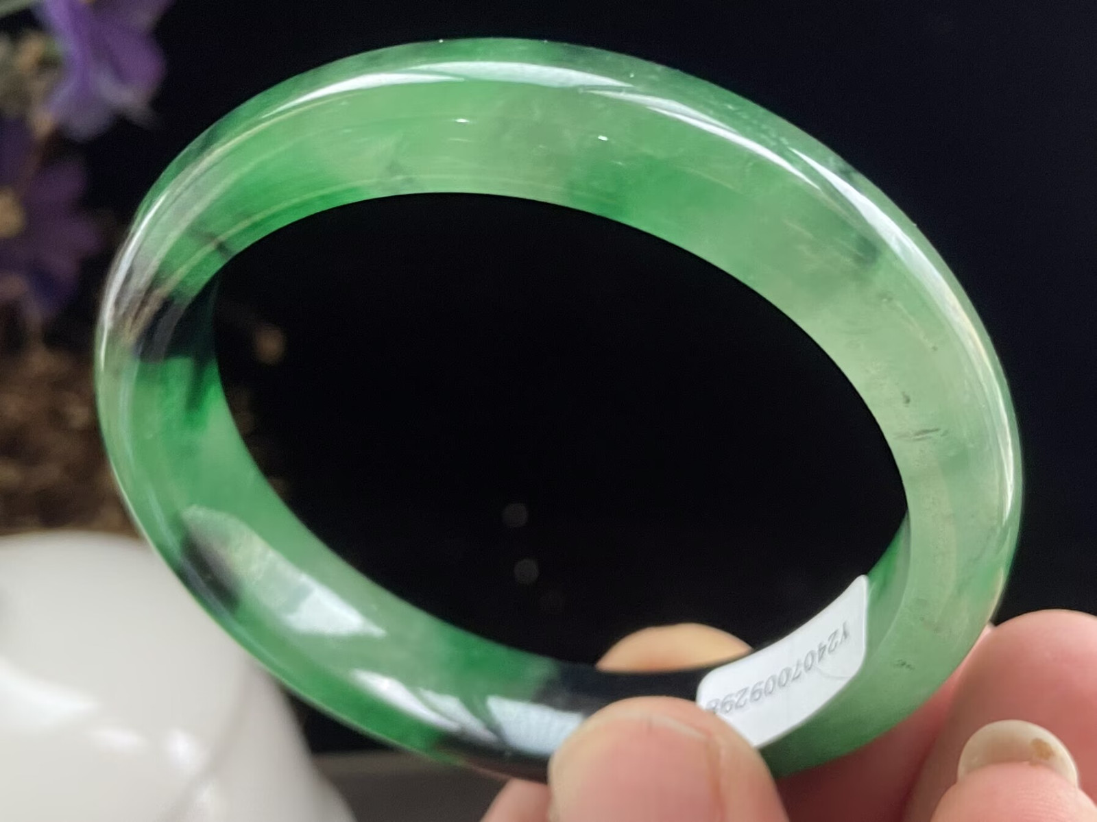 Certified Natural Grade AAA Ice Green Burmese Jade jadeite bracelet 56MM9298