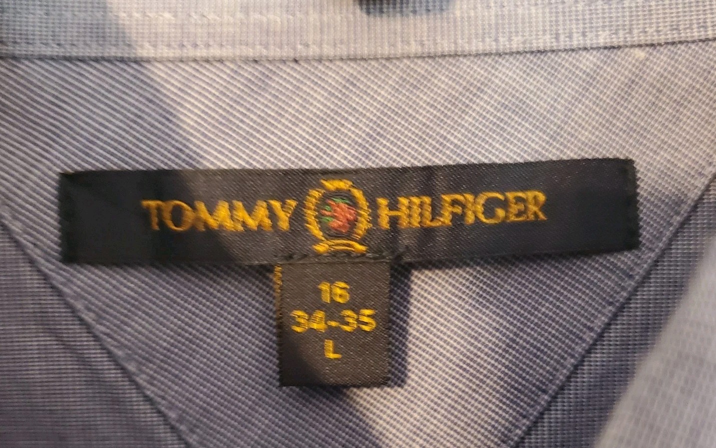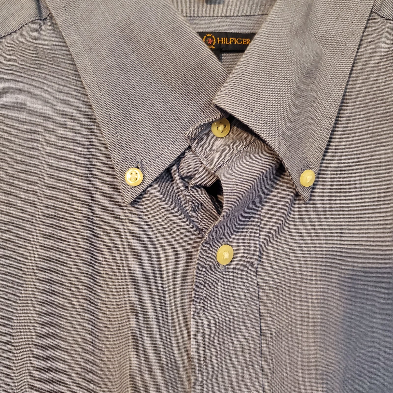 как выглядит Vintage Tommy Hilfiger Solid Blue Button Down Shirt Men s 16 Large Dress Shirt фото