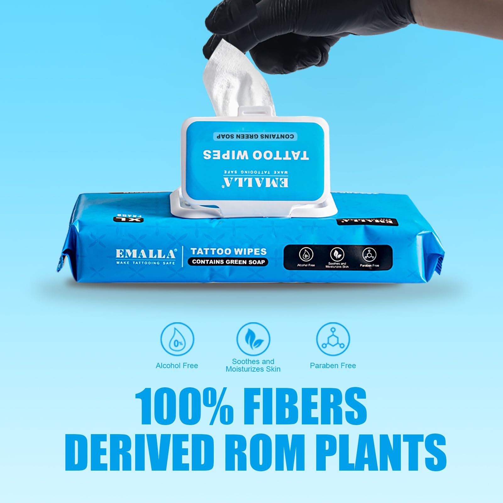 Tattoo Wipes 40pcs Green Emalla Soap Count Premium Cleaning Skin During 7.87x5.9