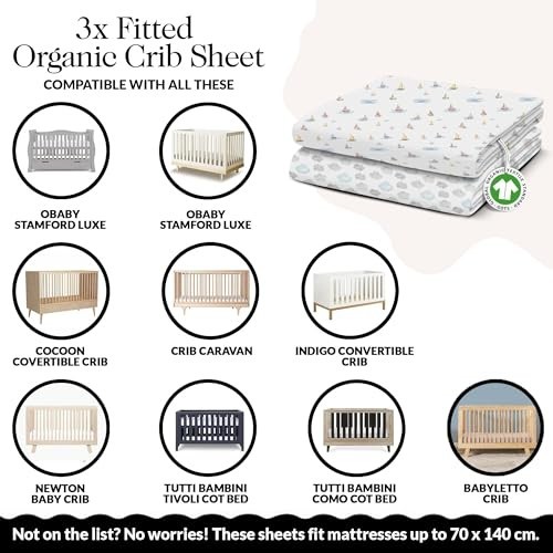 Organic Cotton Baby Crib Sheets 3-Pack - GOTS Certified Soft Fitted Mini Mattres