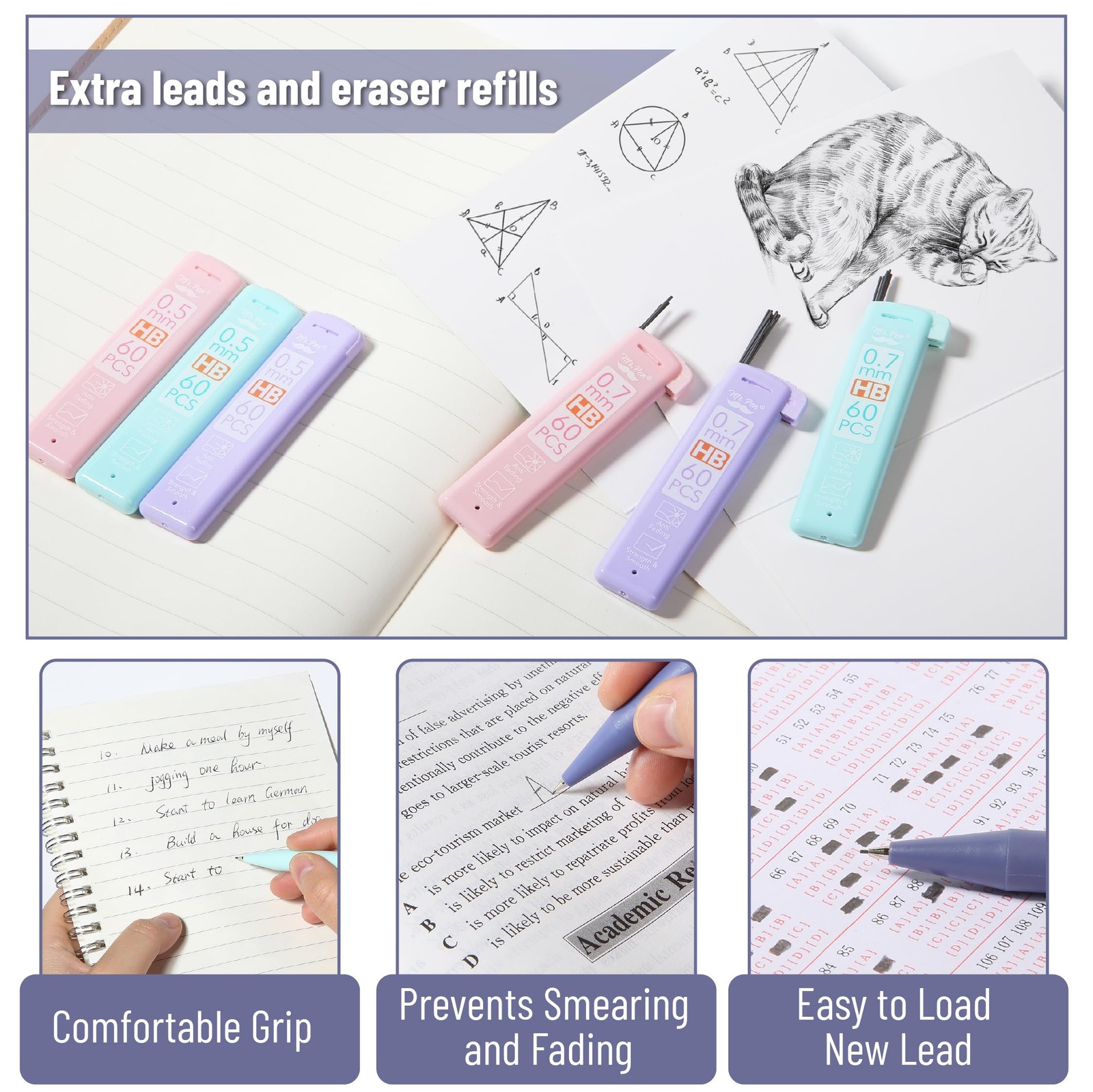 • Mr. Pen- Pastel Mechanical Pencil Set with Lead Refills Erasers, 6 Pack, 2...