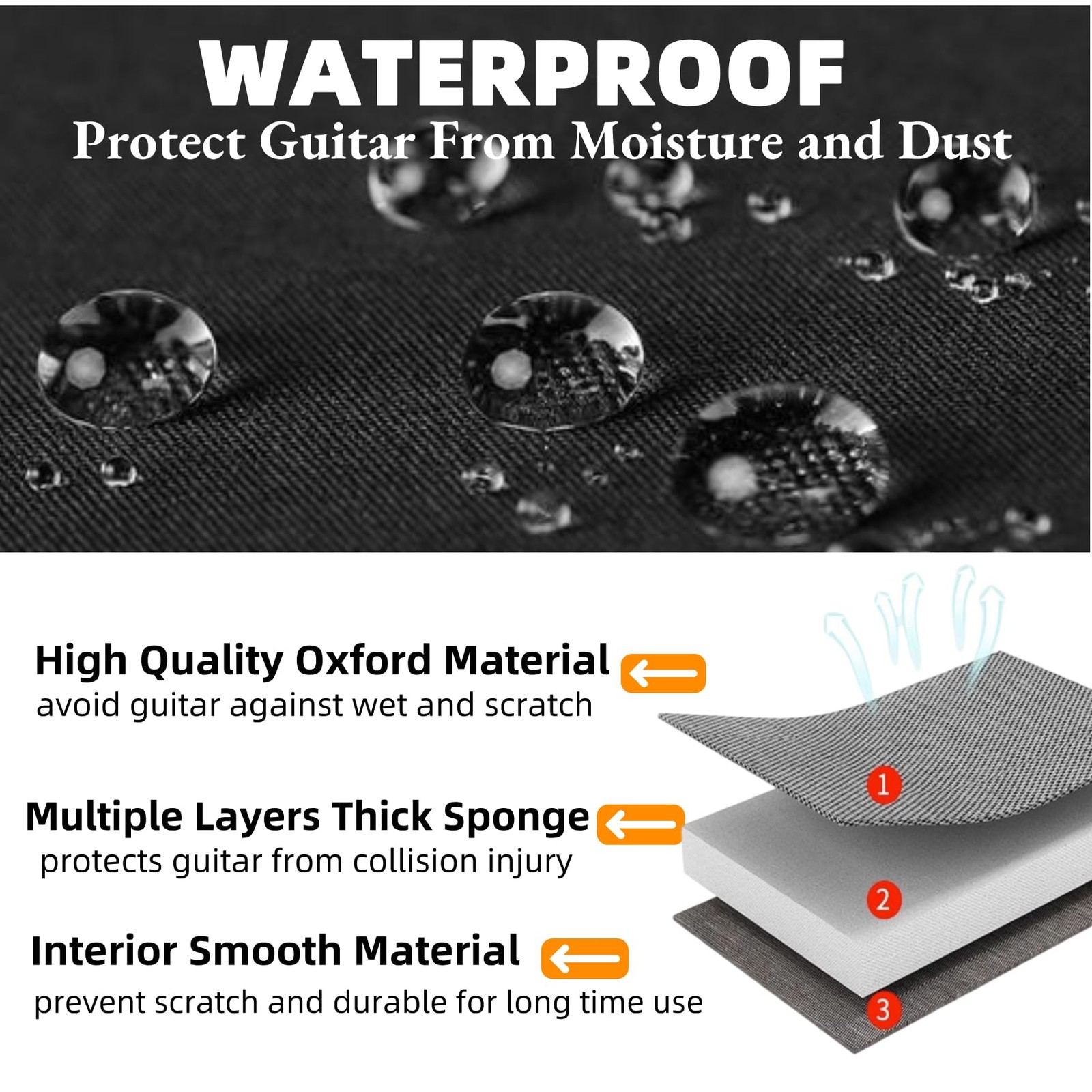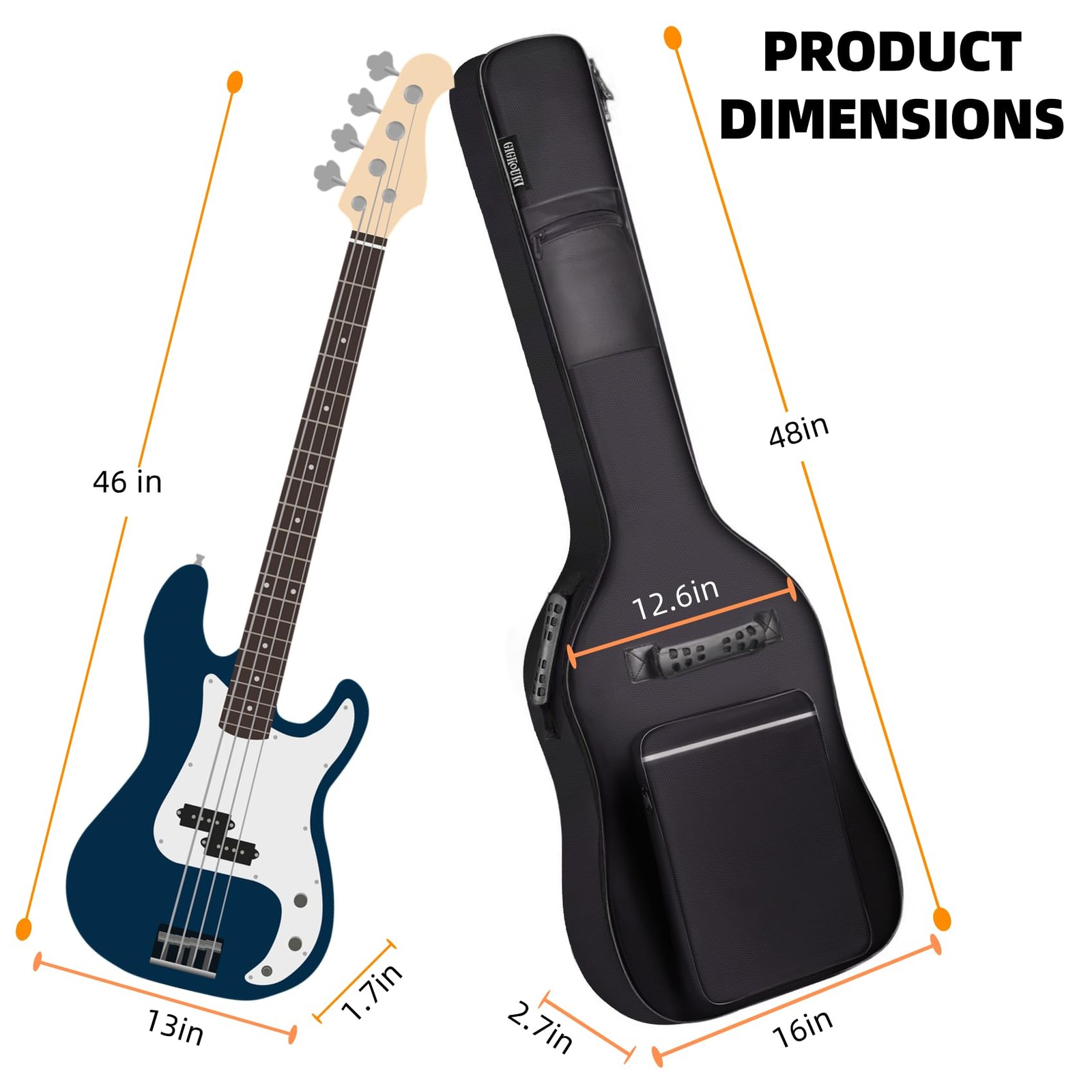 GIGKOUKI Bass Guitar Bag Gig Bag 0.3in Padding Black Padded Waterproof Backpa...