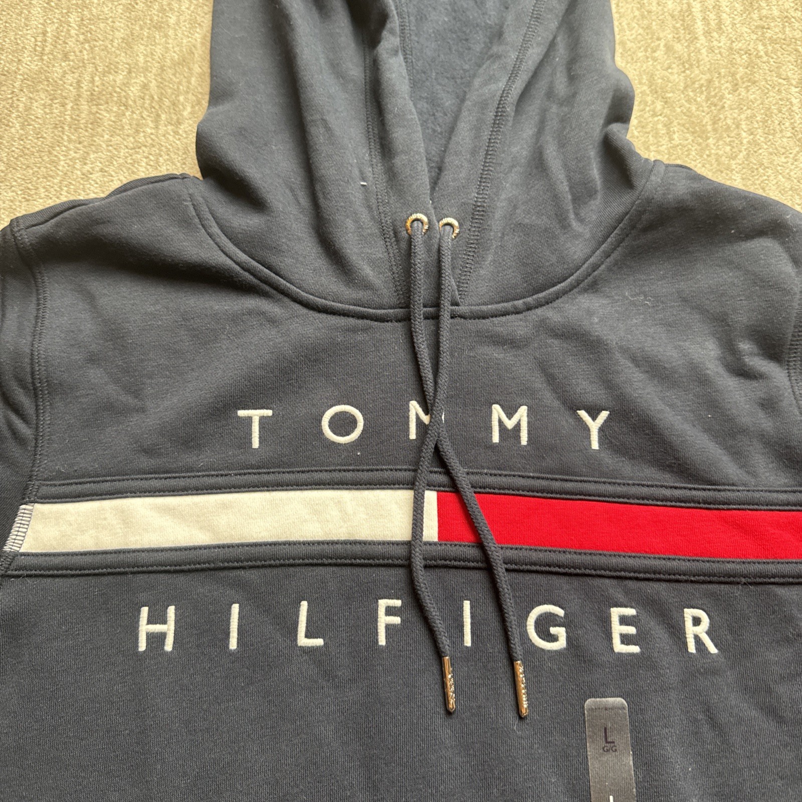 как выглядит Tommy Hilfiger Mens Embroidered Logo Hoodie Size L, 0472 фото