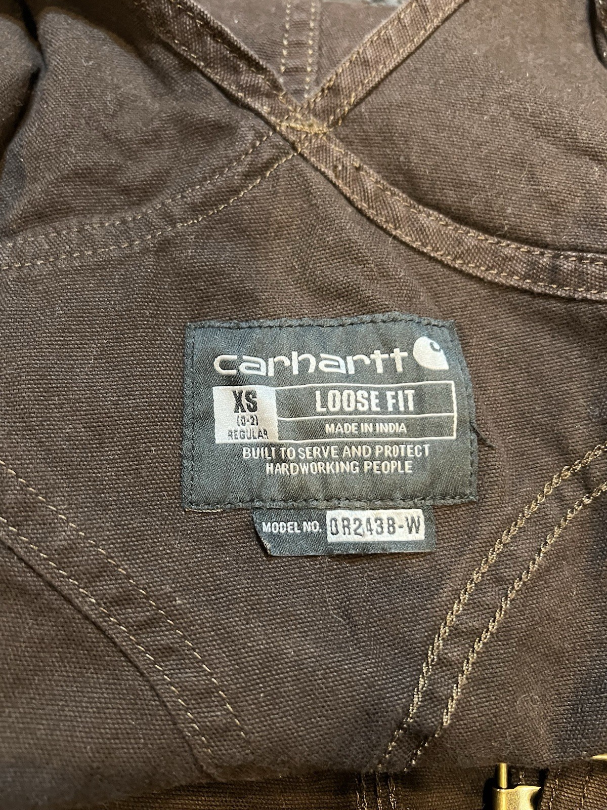 как выглядит Women s Carhartt Dungarees Brown Bib Duck Canvas Overall Size XS 0-2 Reg фото