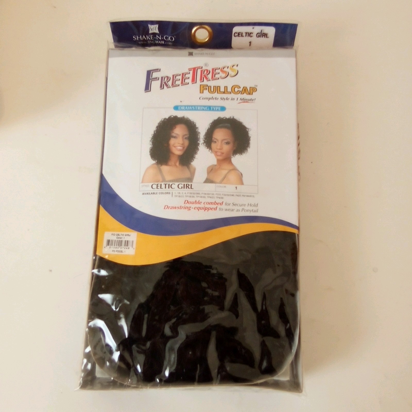 как выглядит Free Tress Full Cap Celice Girl Drawstring Shake and Go Color 1 Wig NWT фото