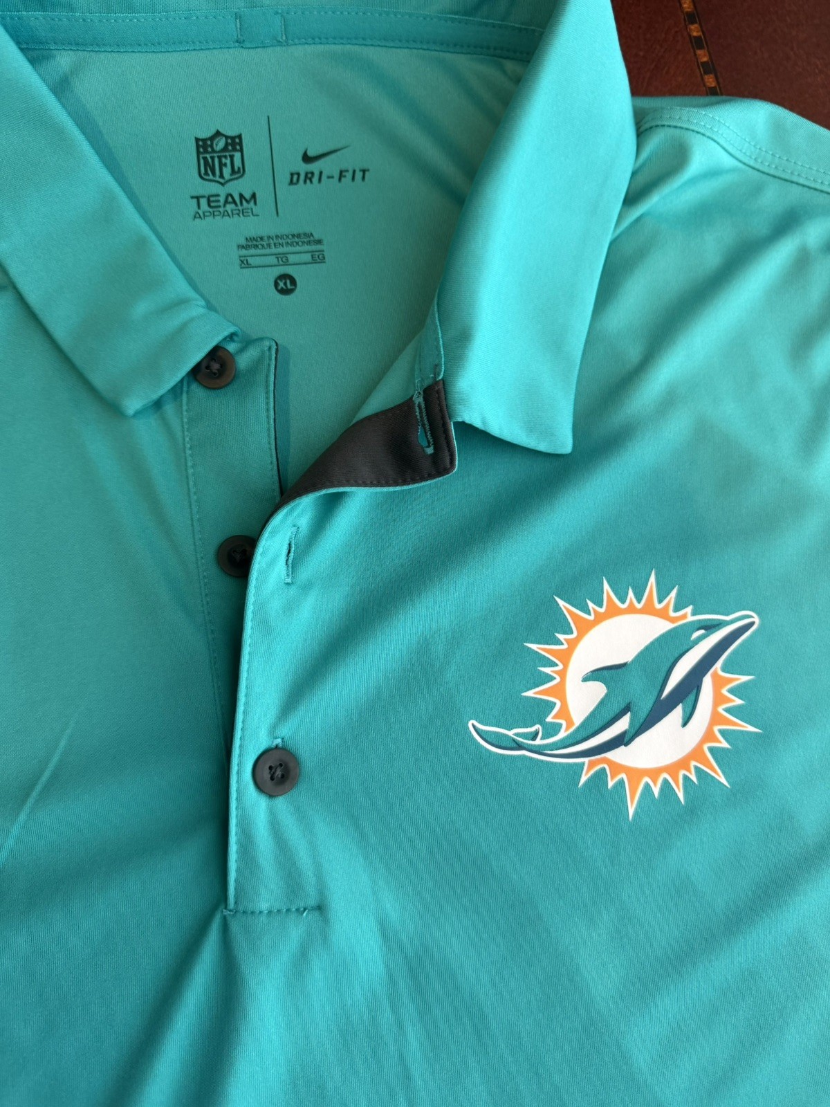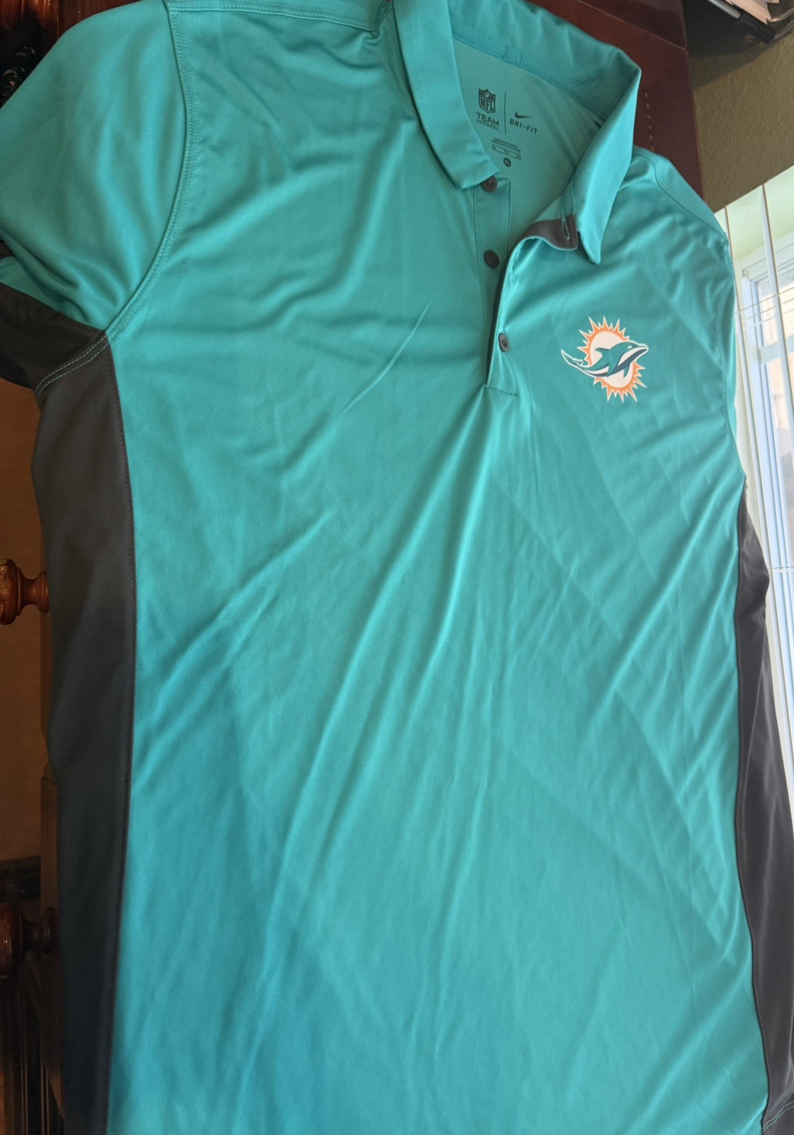 • NWT MIAMI DOLPHINS MEN S NIKE DRI FIT AQUA BLACK POLO - Size XL