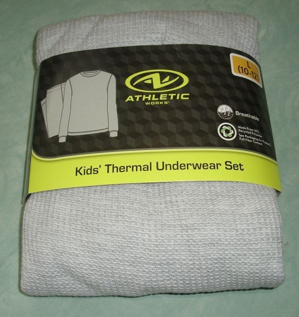 Kids Boys Thermal Underwear Set L 10/12 Athletic Works Lt Heather Grey