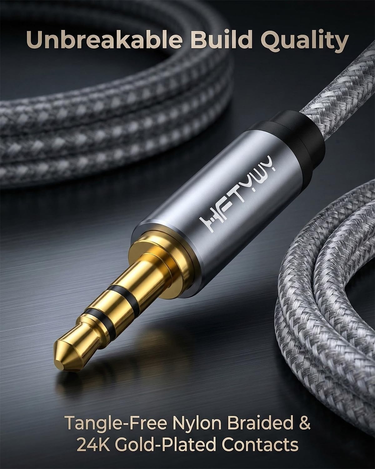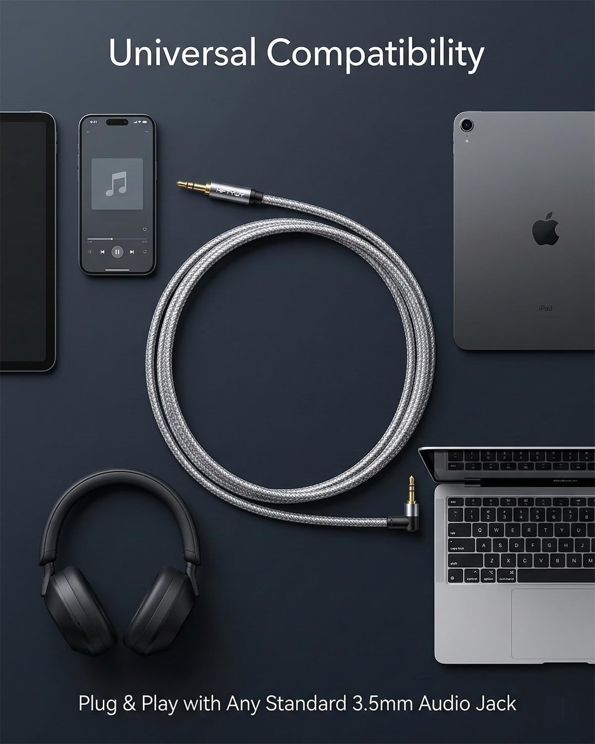 Hi-Fi 1.2M Audio Cable - Tangle-Free Aux Cord with Right Angle Connector