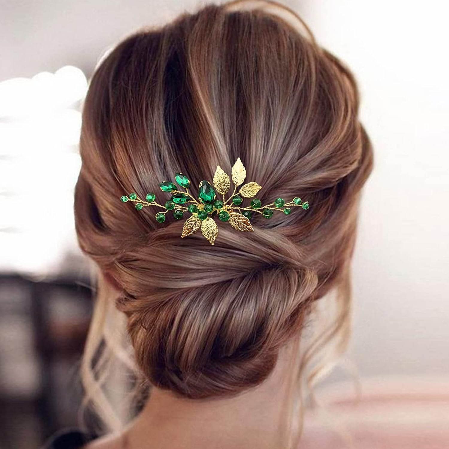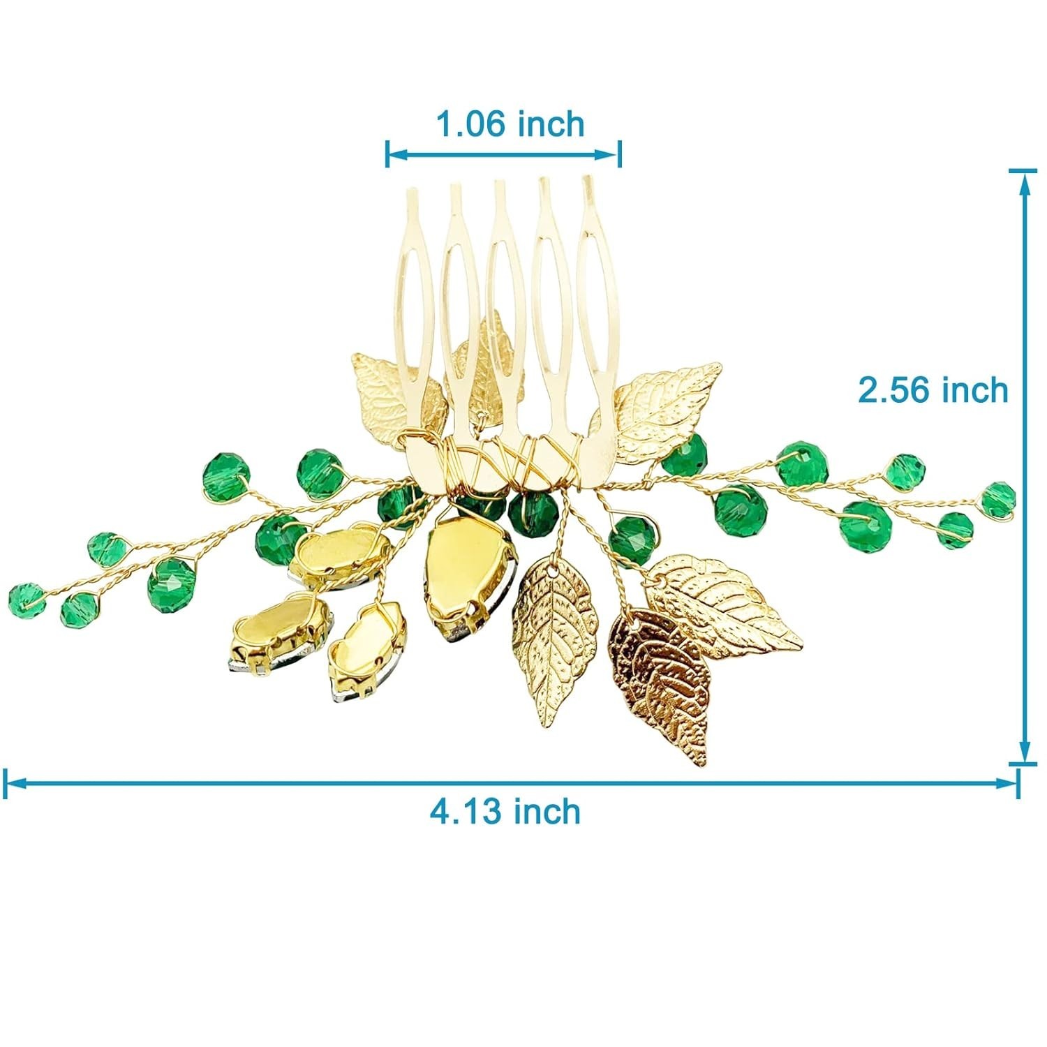 как выглядит Bridal Hair Comb Emerald Green Crystal Gold Leaf Vine Hair Piece Accessories for фото