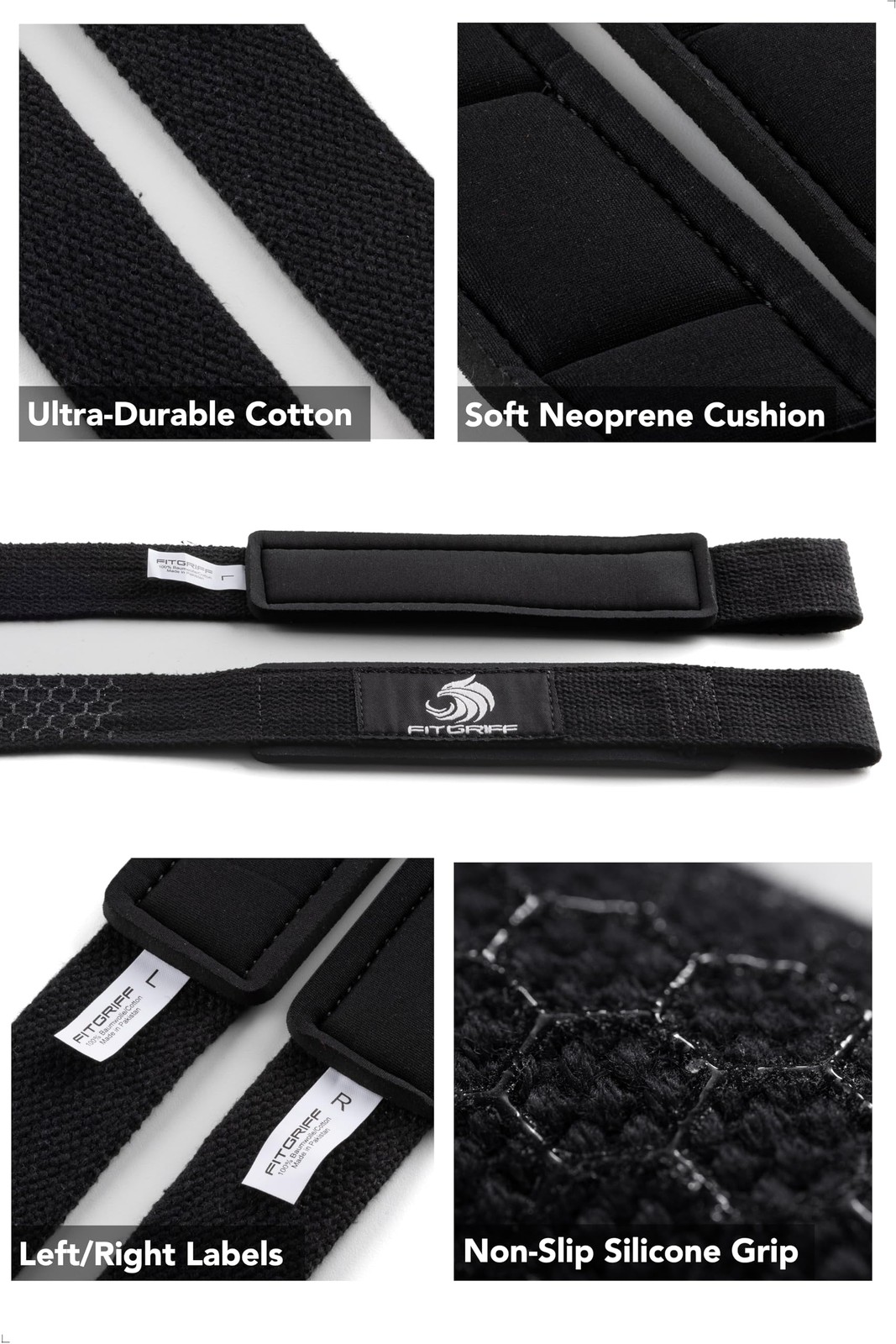 Lifting Wrist Straps for Weightlifting, Gym, Deadlift, Workout - Standard Black