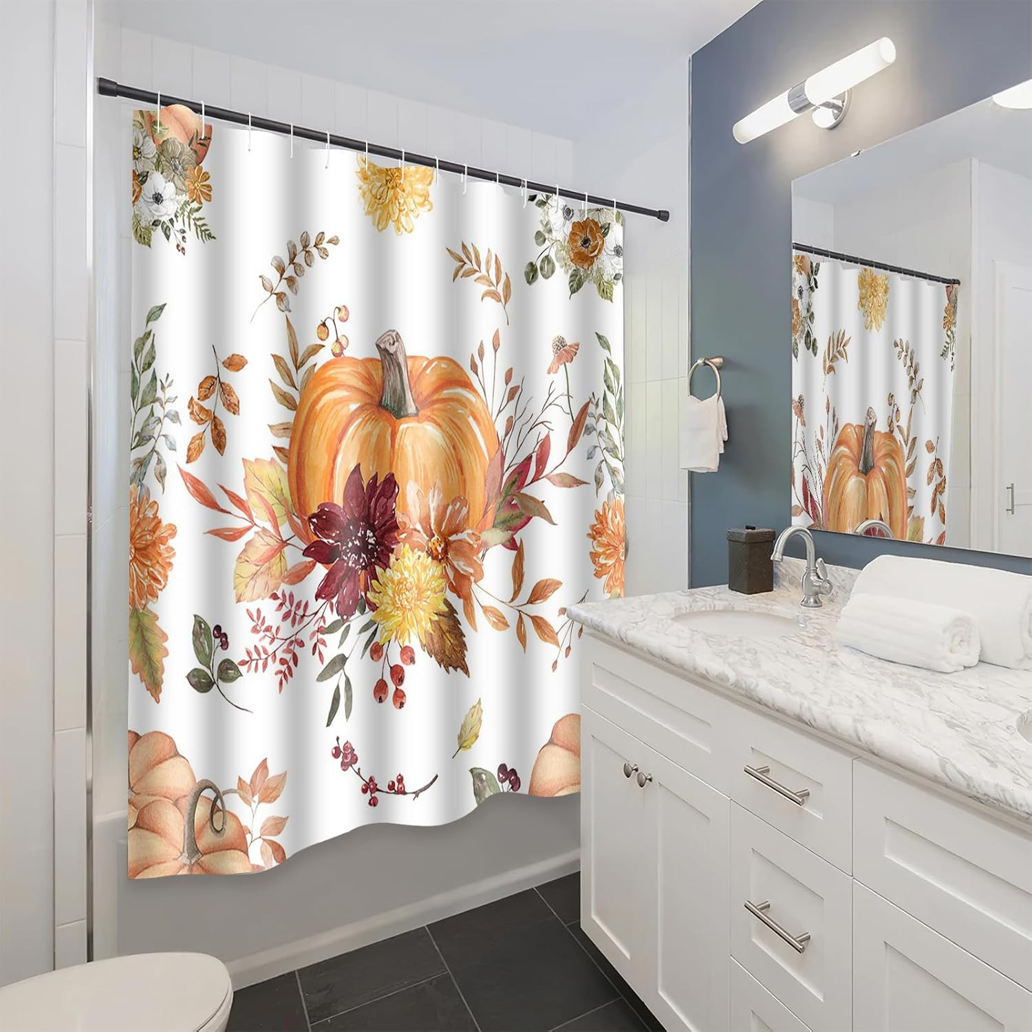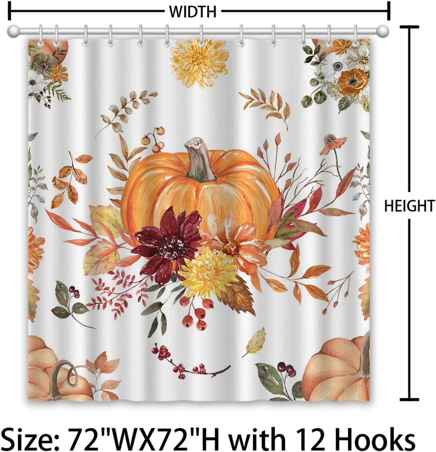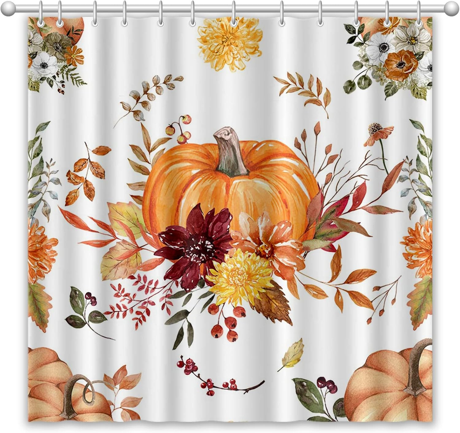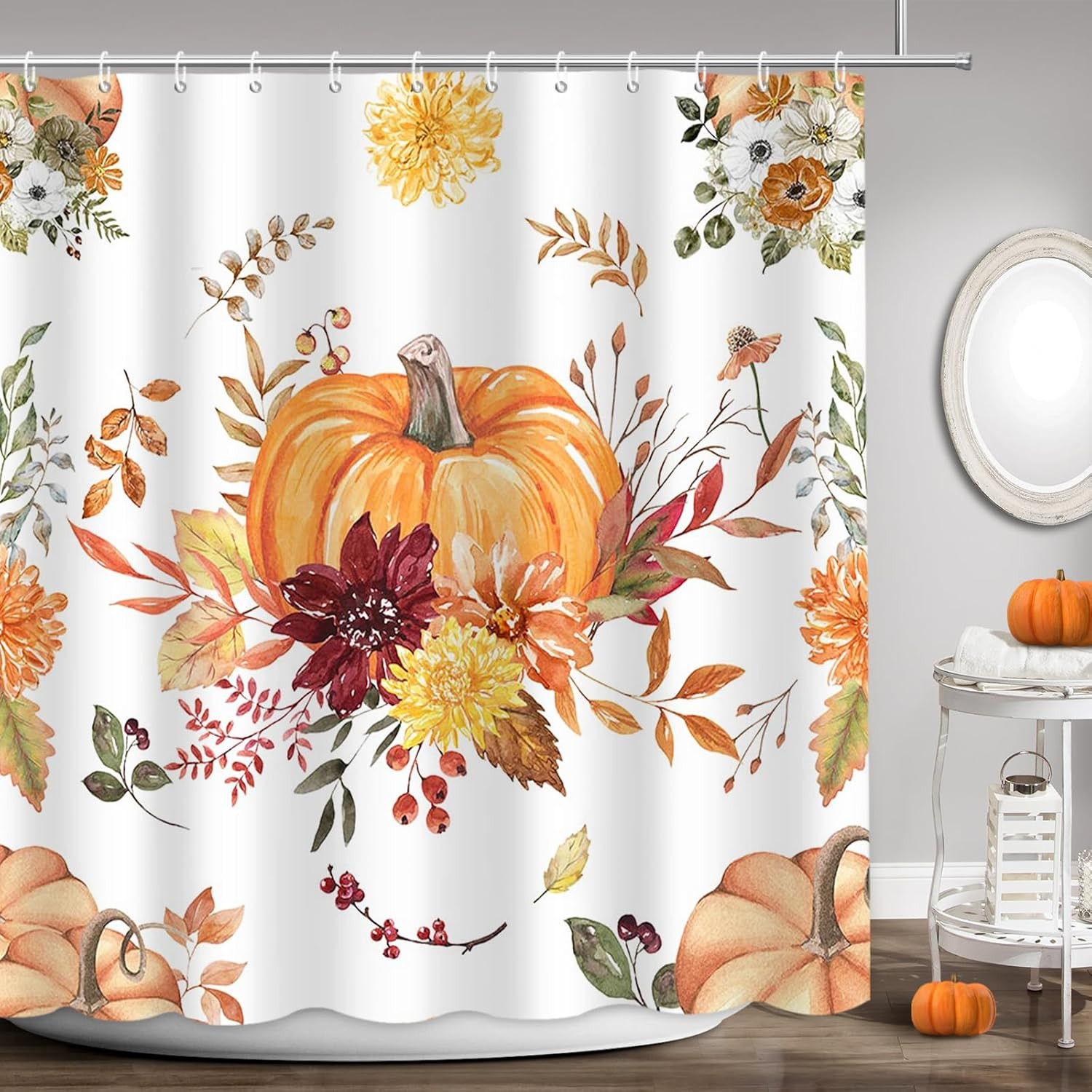 Fall Bohemian Pumpkin Shower Curtain Set for Bathroom Decor Autumn Harvest Thank
