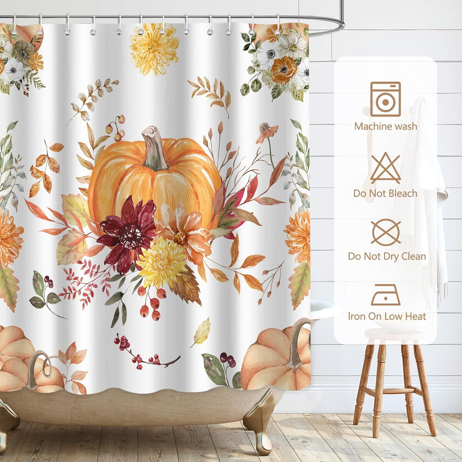 как выглядит Fall Bohemian Pumpkin Shower Curtain Set for Bathroom Decor Autumn Harvest Thank фото