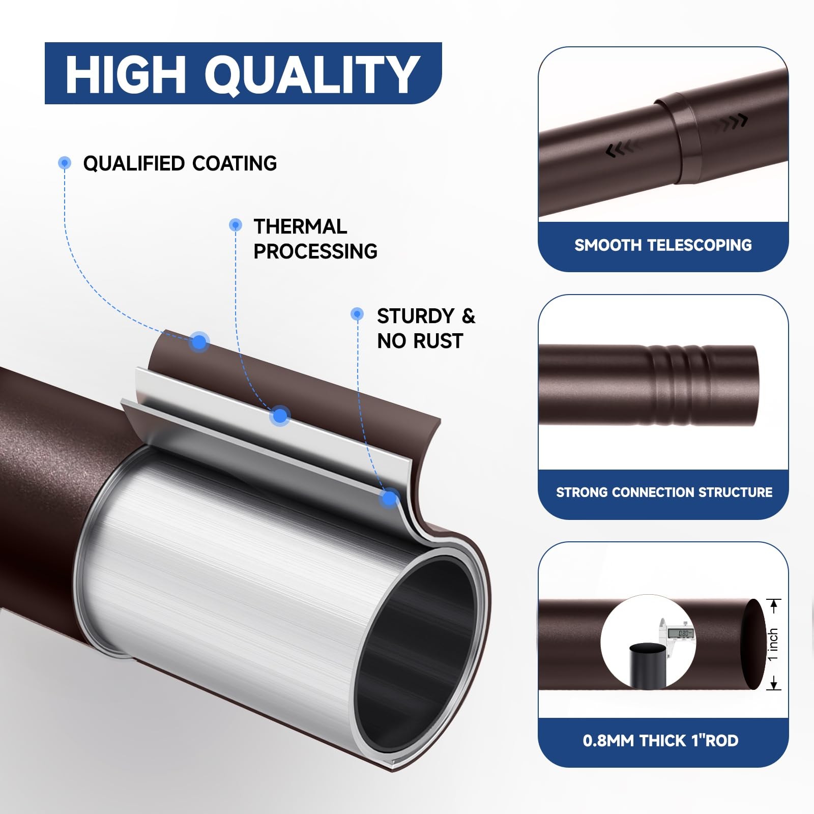 BRIOFOX Bronze Curtain Rods for Windows 48 to 84 Inch 4-7.33ft - 1'' Diameter H