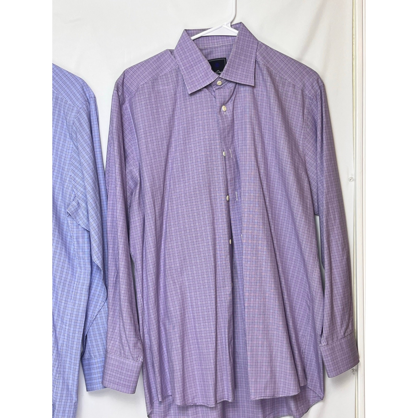как выглядит Lot of 2 David Donahue Mens 16 Purple/Blue Button Up Long Sleeve Dress Shirt фото