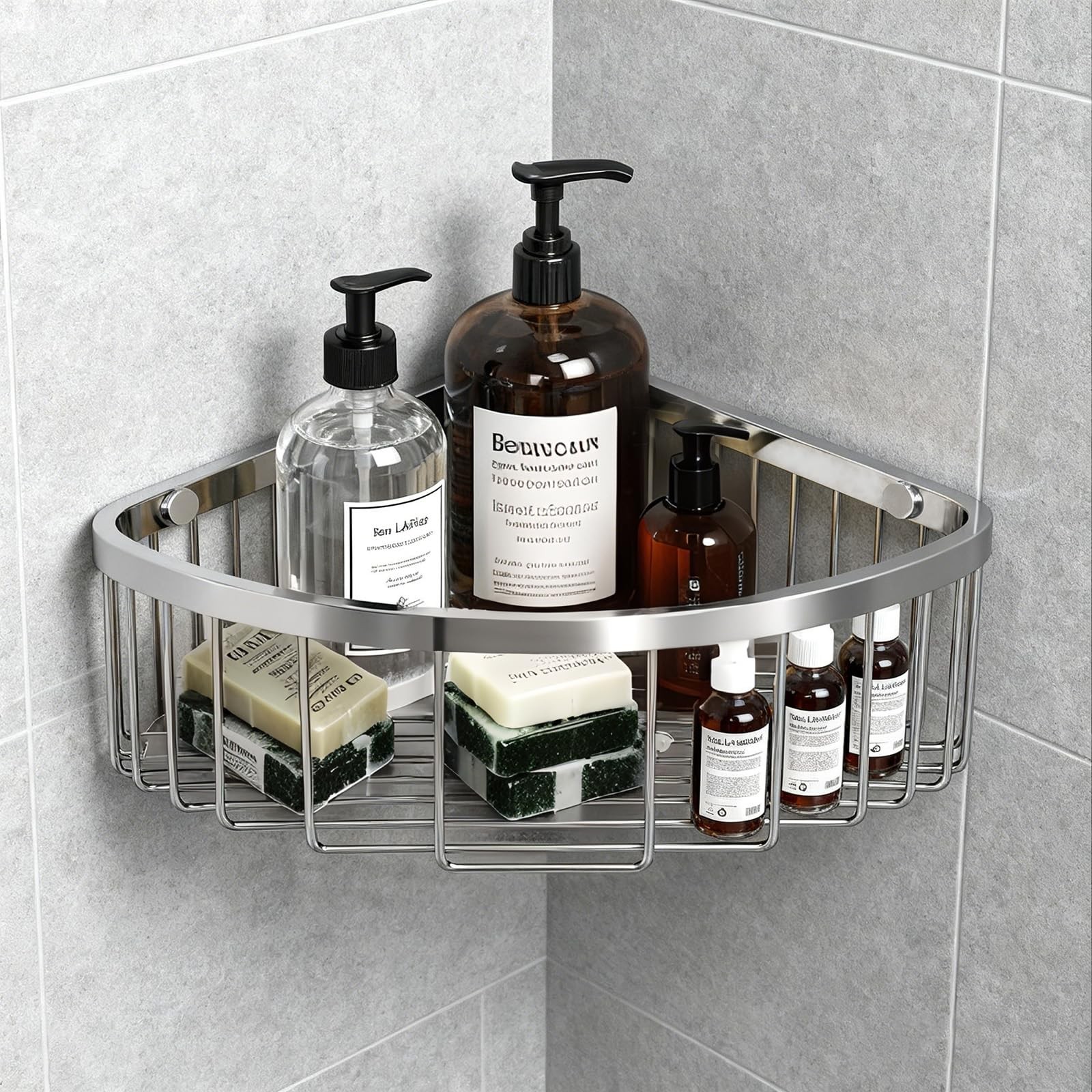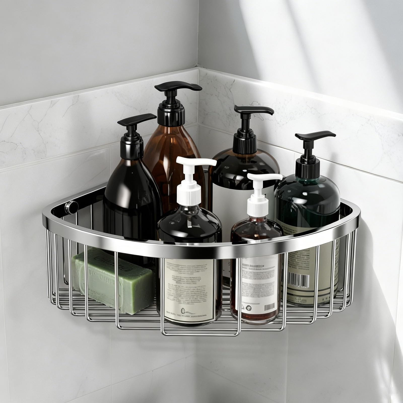 как выглядит Corner Shower Caddy Basket - 304 Stainless Steel Corner Storage Rack,Organize... фото