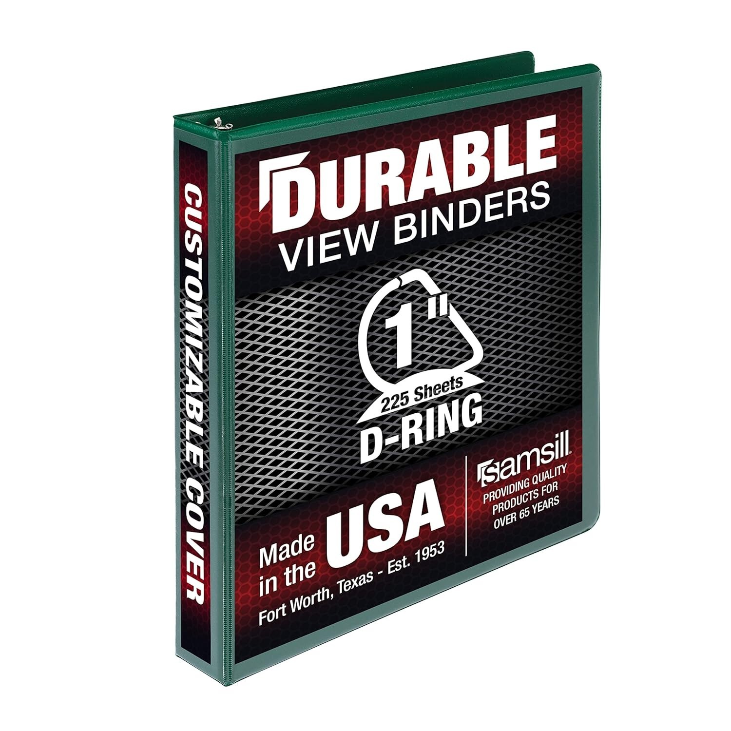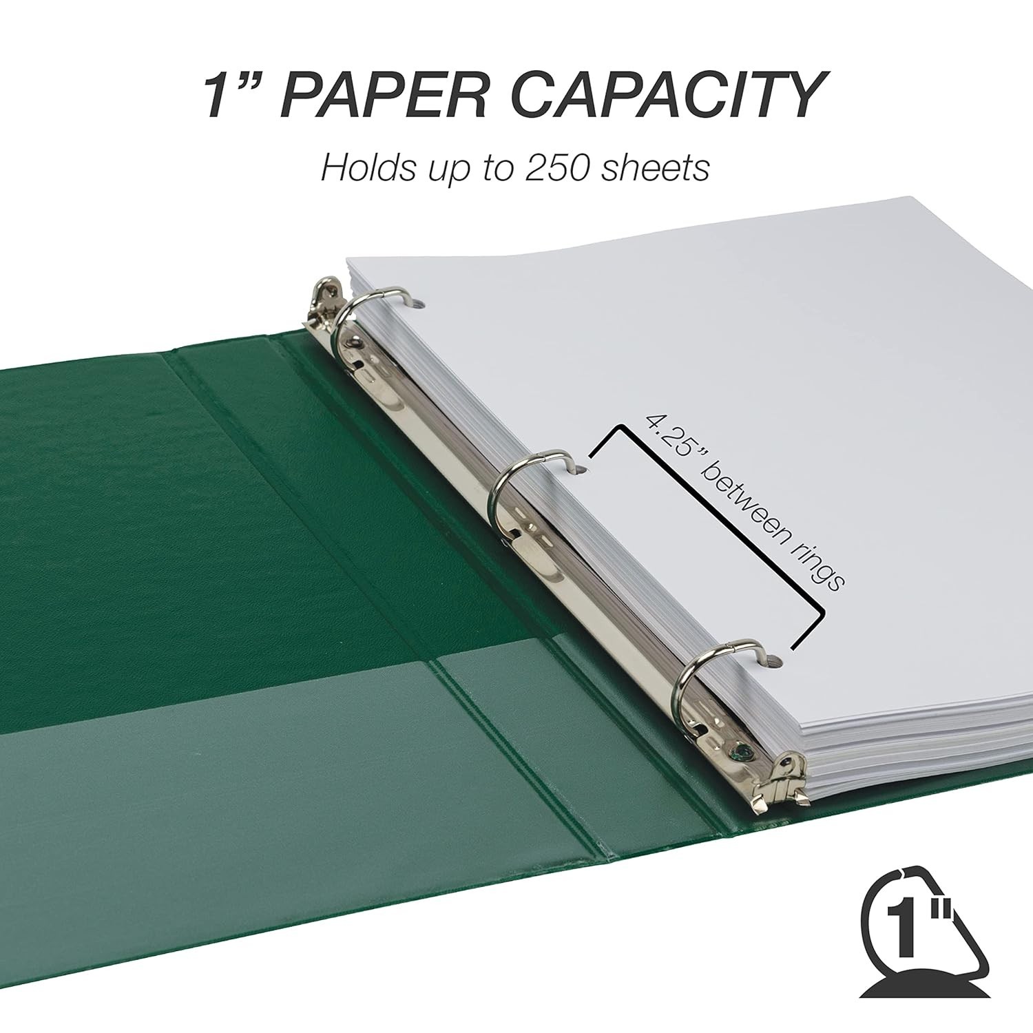 Heavy-Duty 1 Inch 3-Ring Binder, Clear Overlay for Personalization, Green