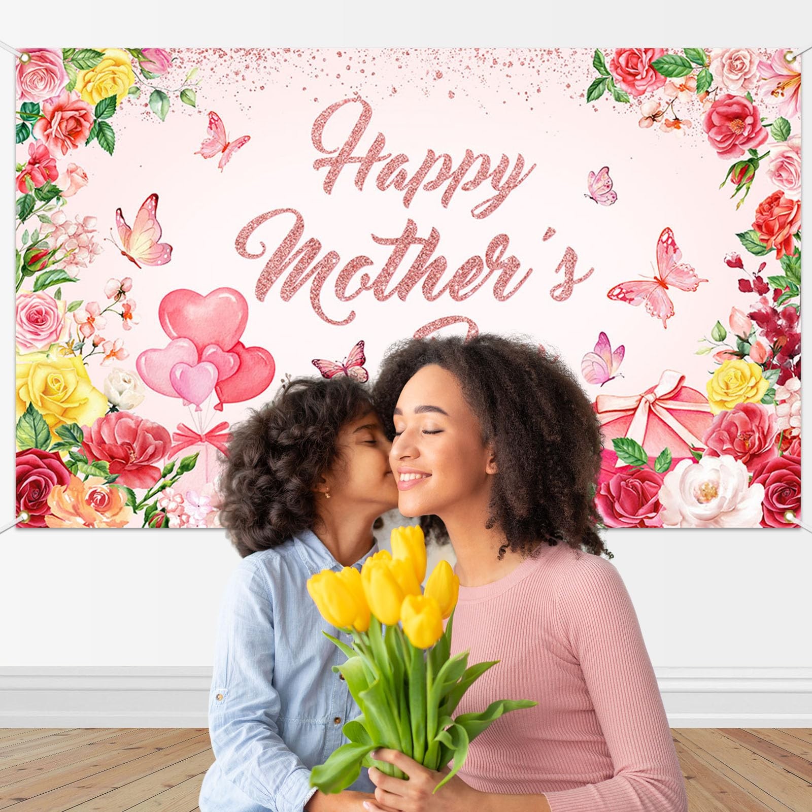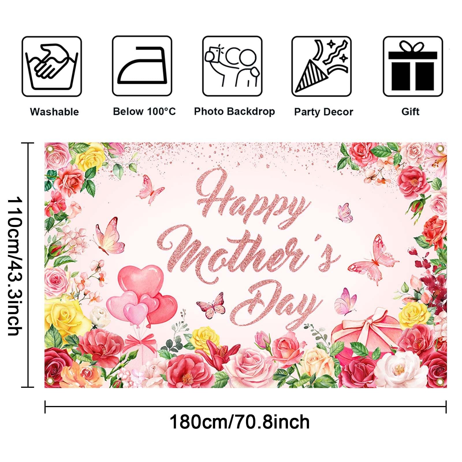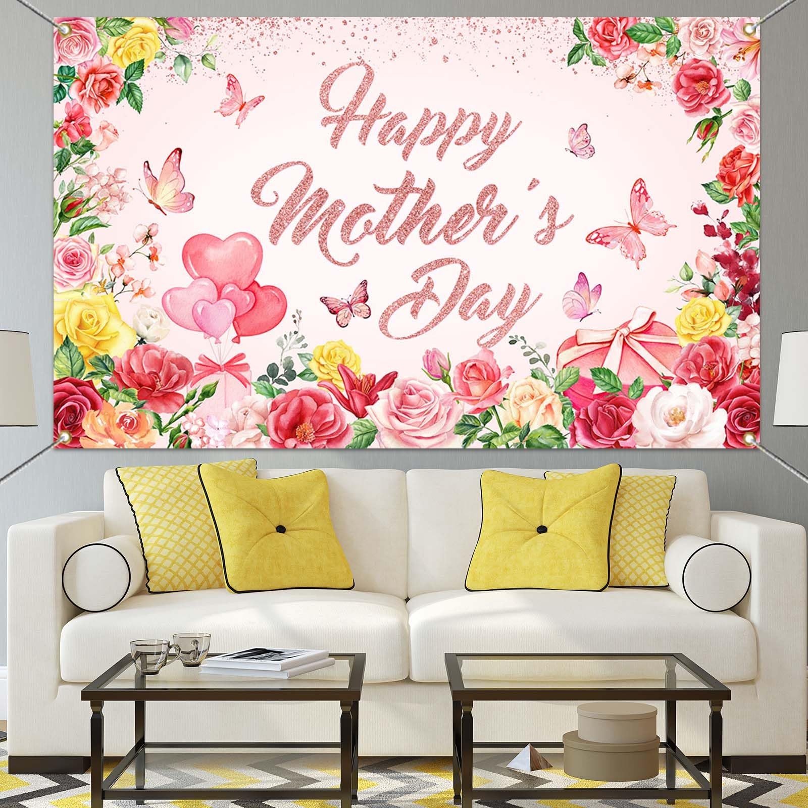 Happy Mother's Day Banner Large Mother's Day Party Decorations Banner Pink Flora