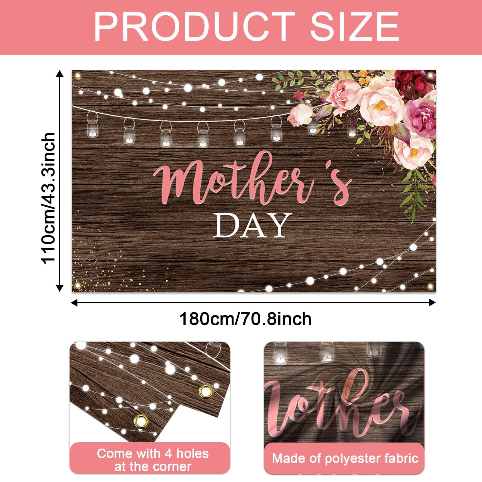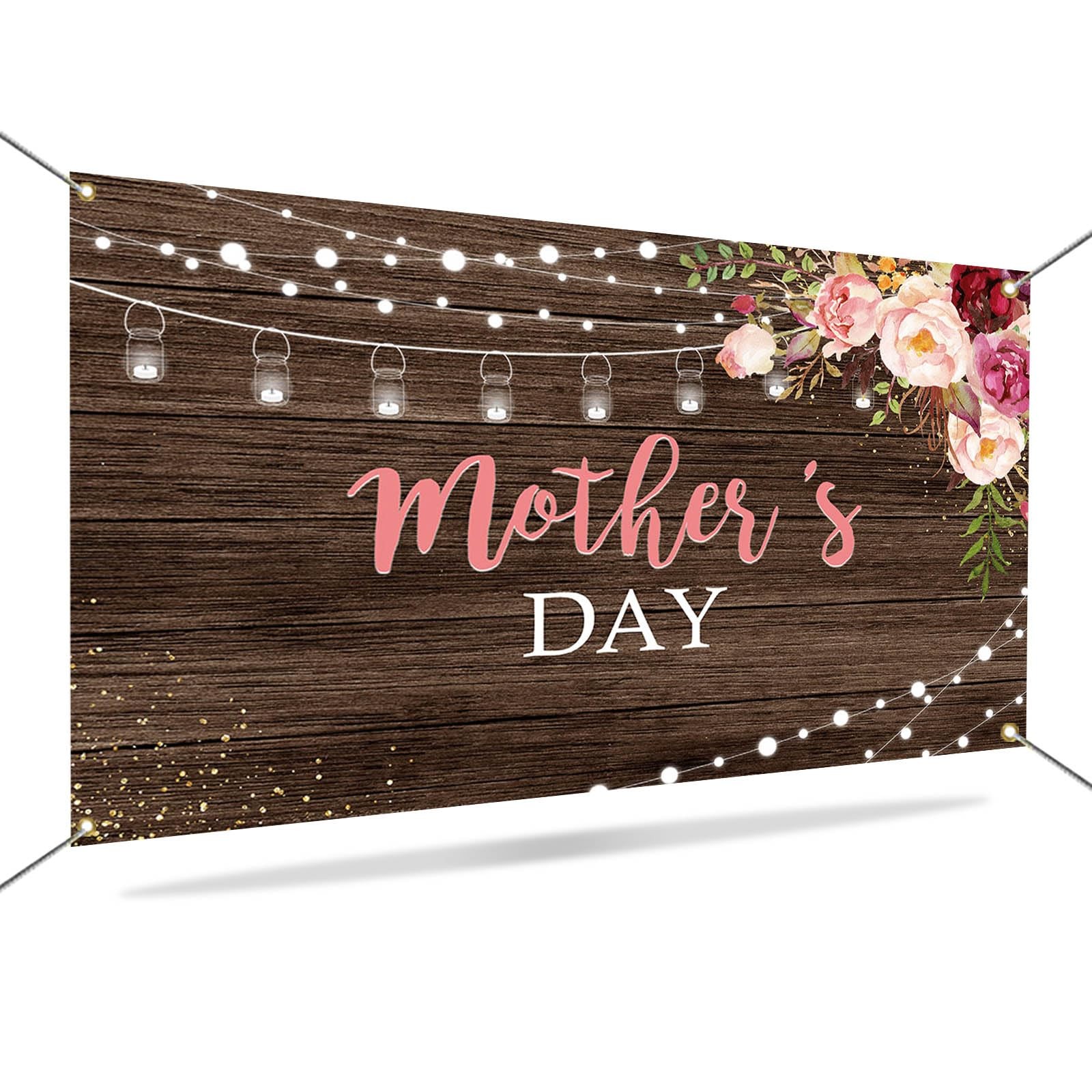 Mother's Day Backdrop Banner Thanks Mother Mom's Day Party Banner Rustic Wood Fl
