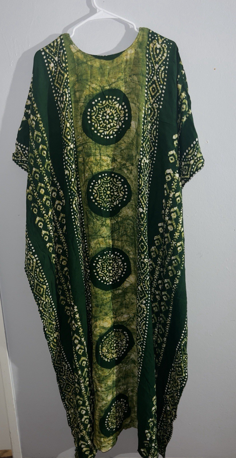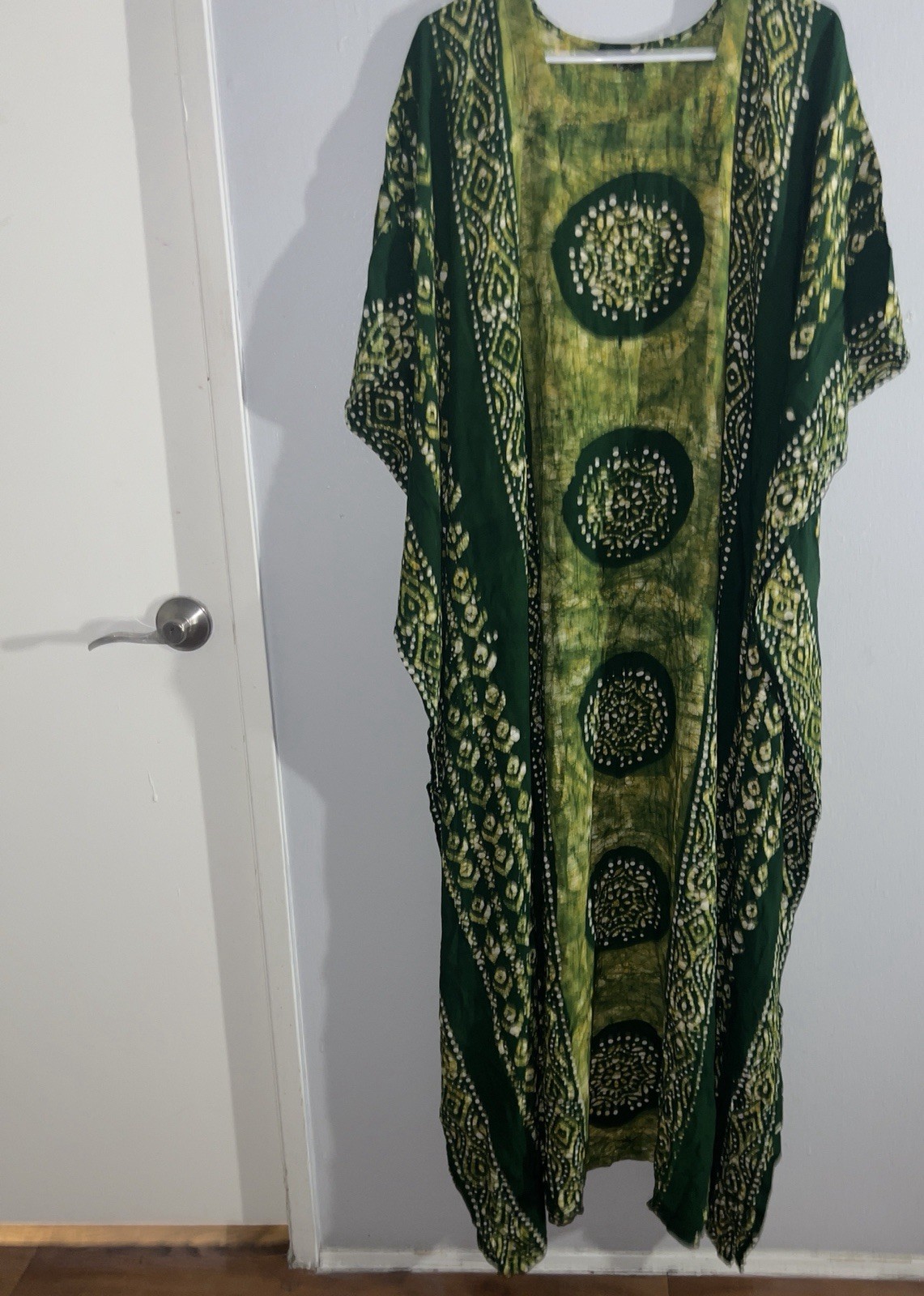 Aisha Aidarus African Ethnic Kaftan Dress Green Patterned Women s Size 56