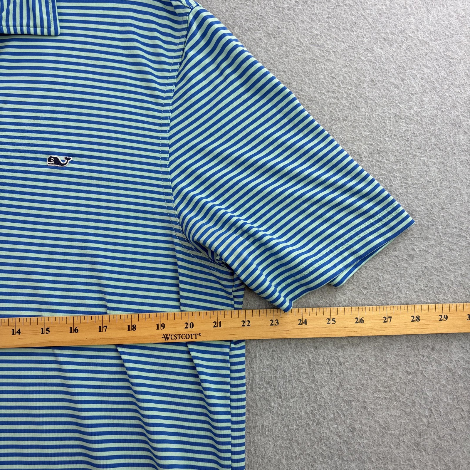 как выглядит Vineyard Vines Polo Shirt Mens Large Blue Stripe Performance Golf Short Sleeve фото