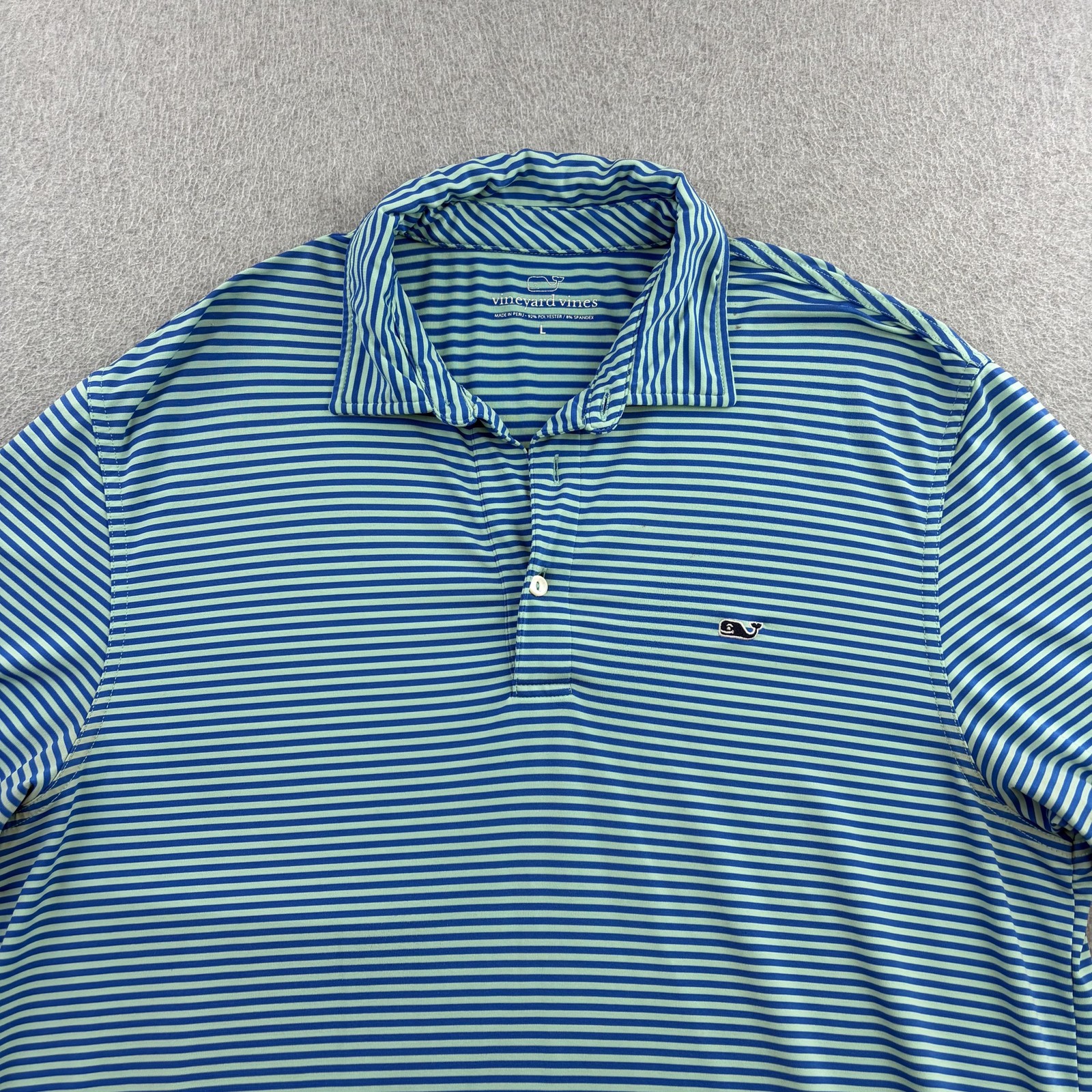 Vineyard Vines Polo Shirt Mens Large Blue Stripe Performance Golf Short Sleeve