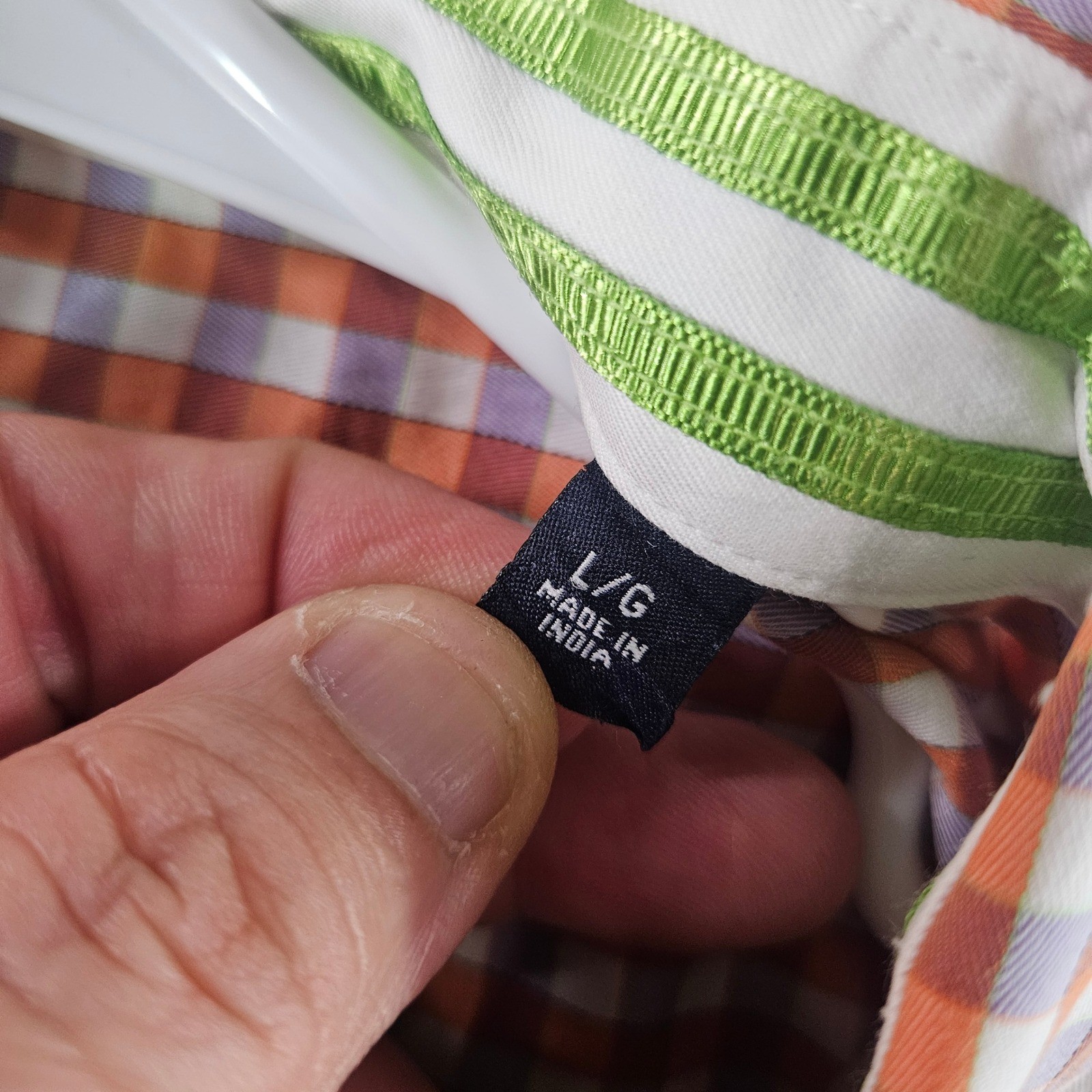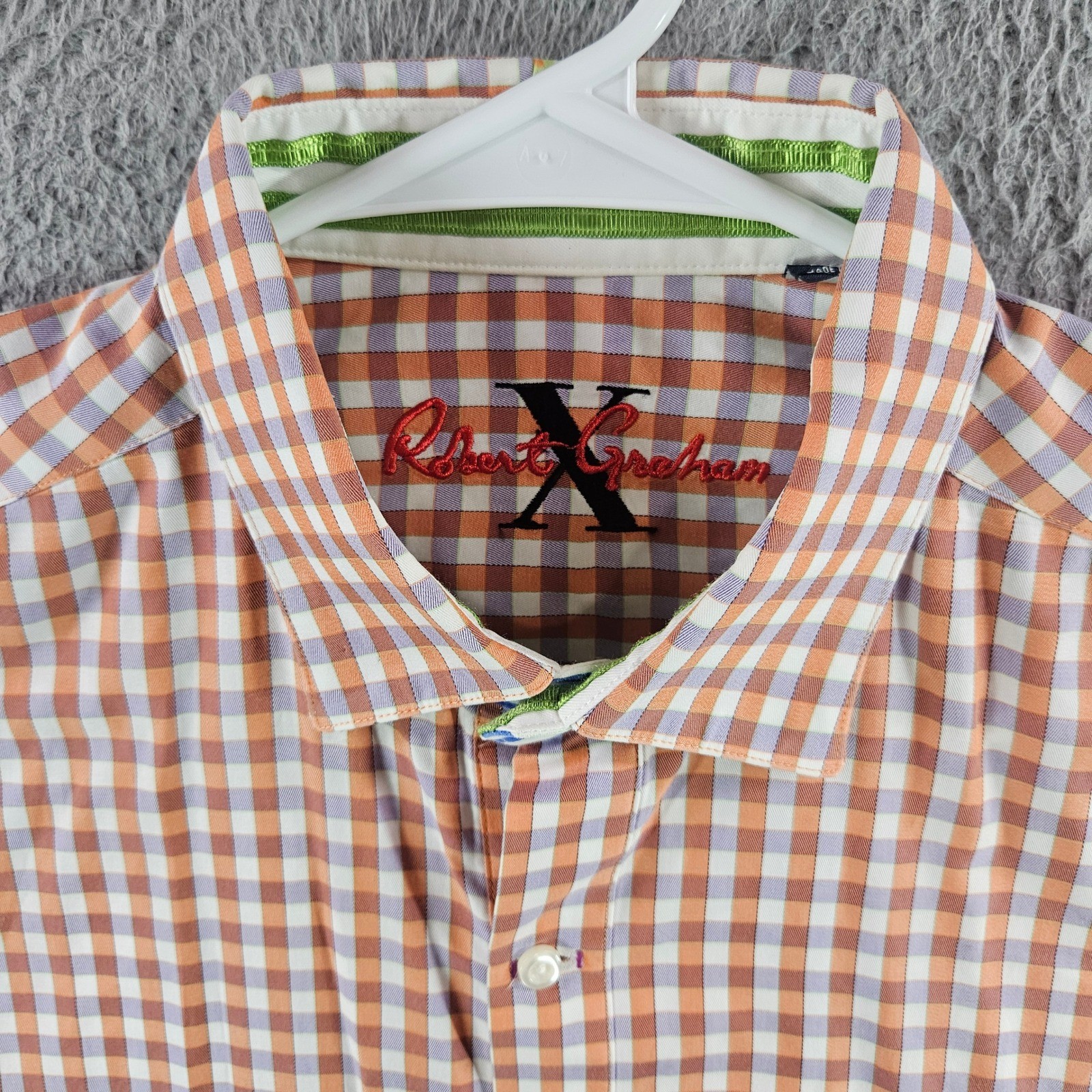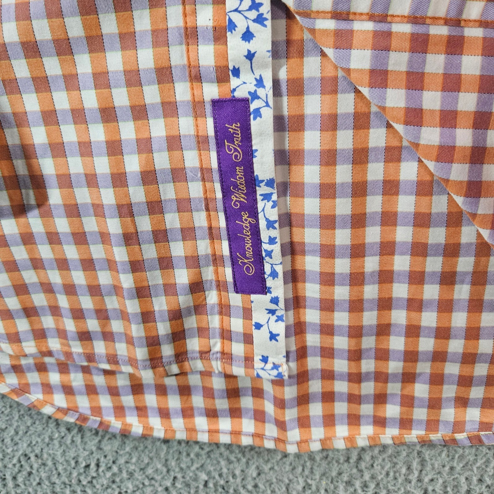как выглядит Robert Graham Mens Large Orange Purple Gingham Check Button Down Shirt Cotton L фото