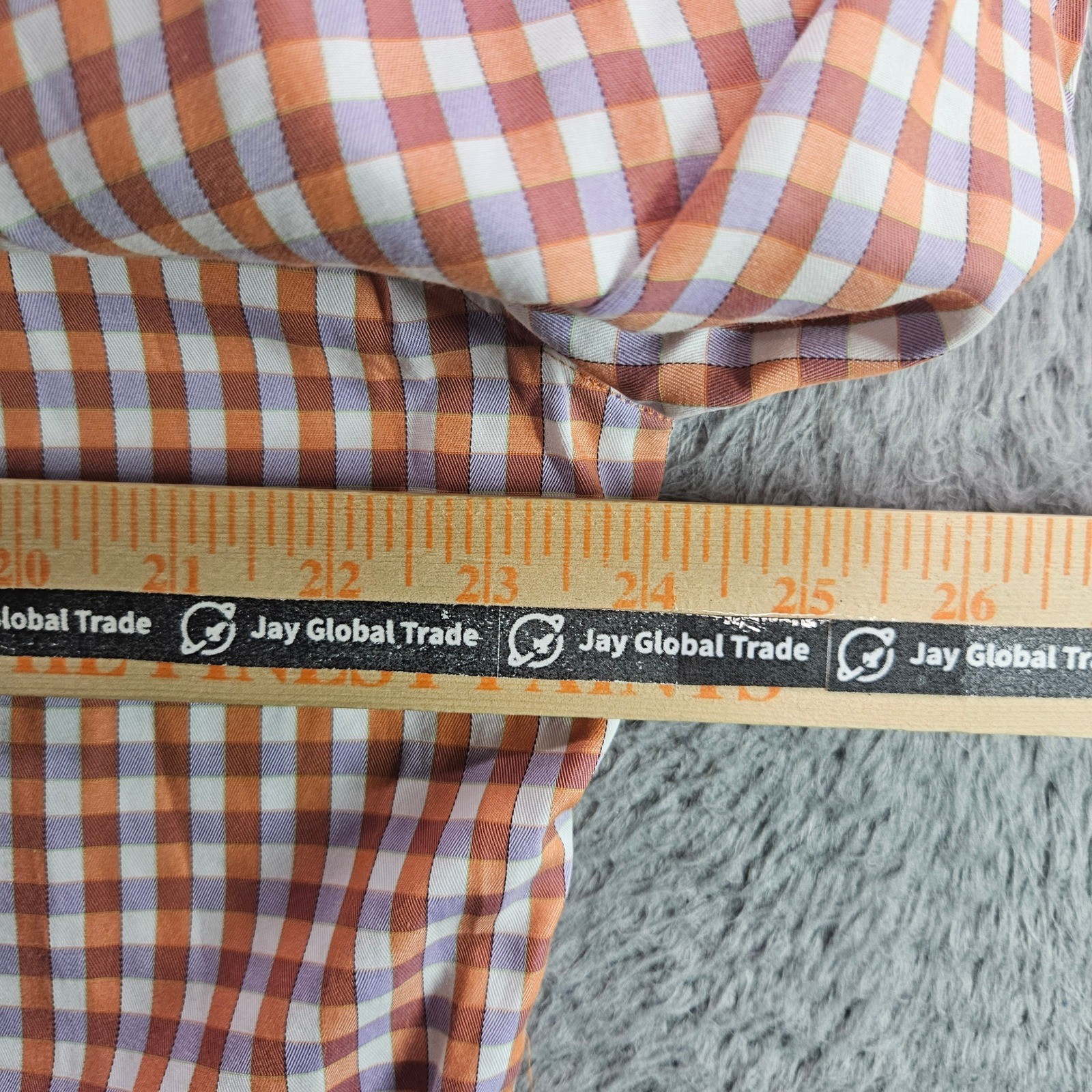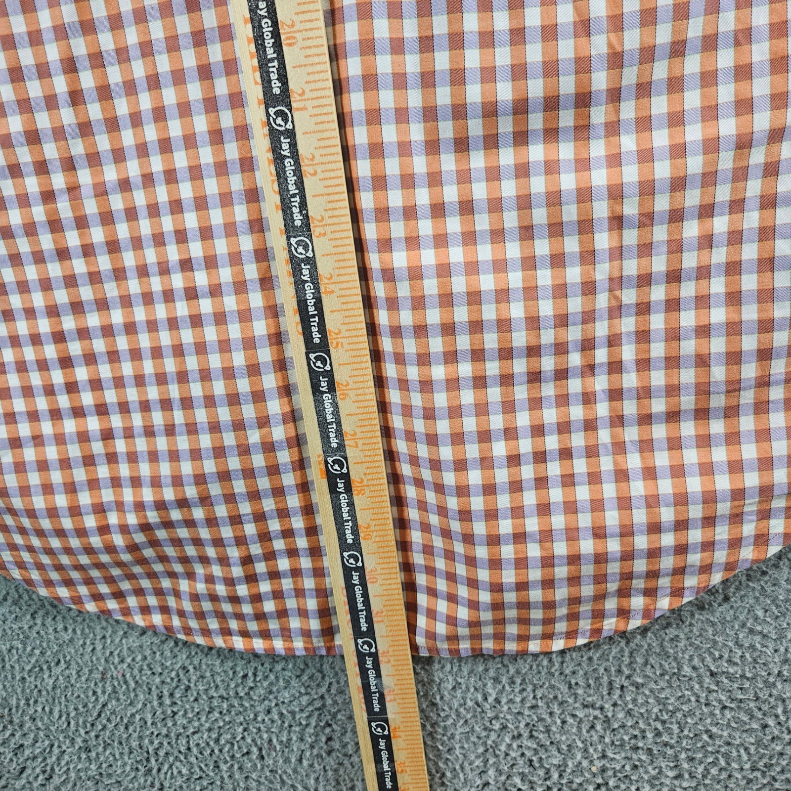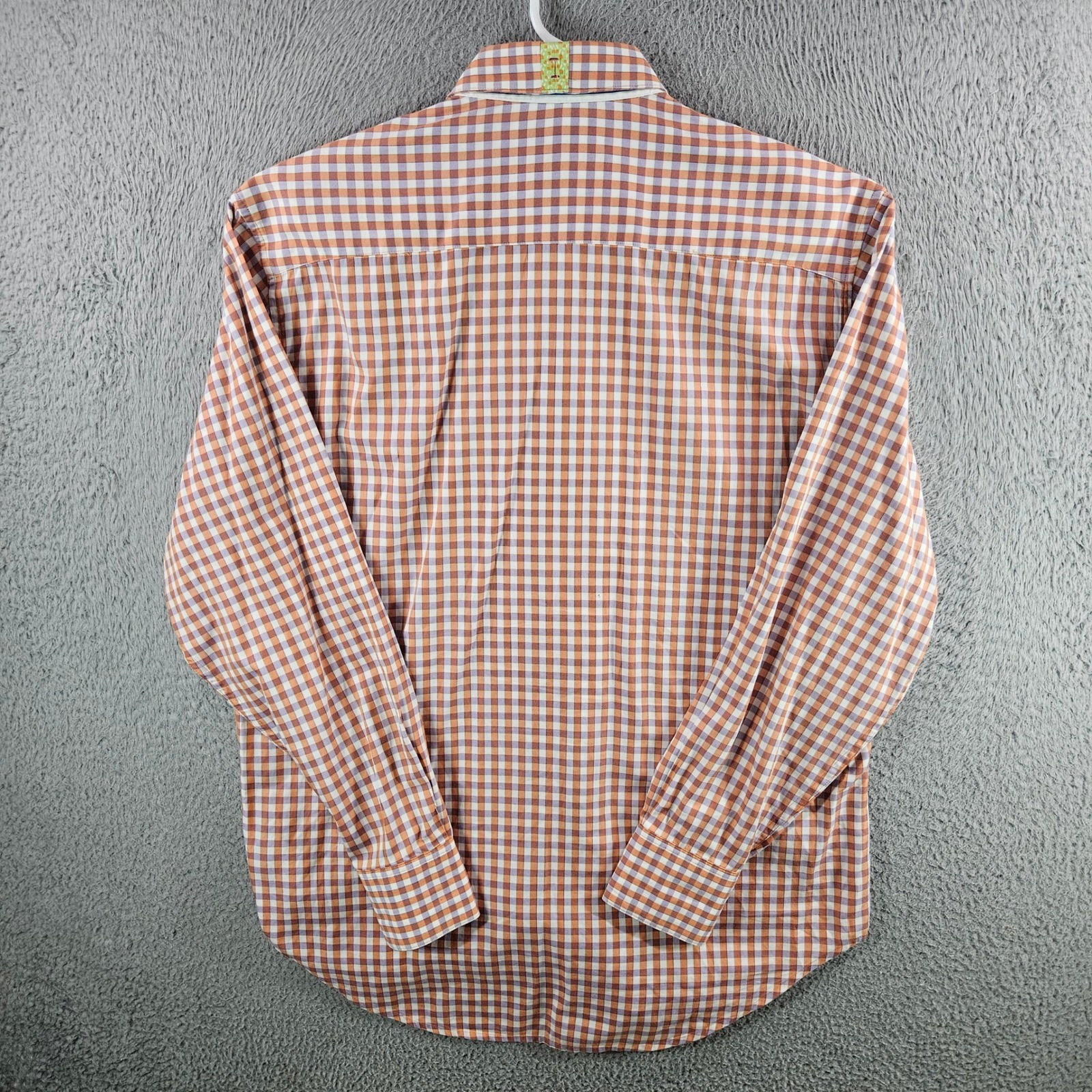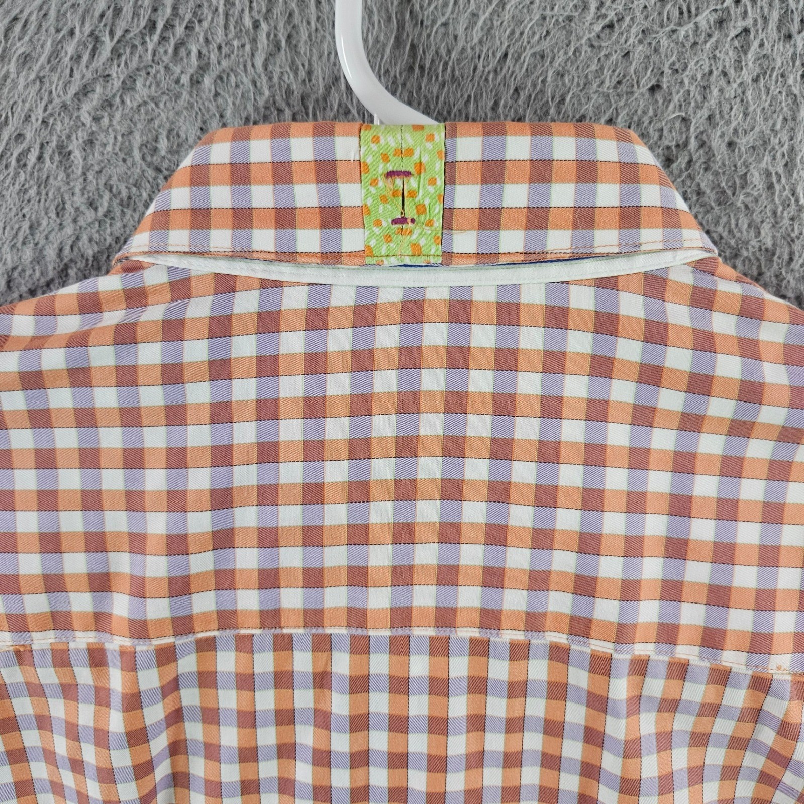 Robert Graham Mens Large Orange Purple Gingham Check Button Down Shirt Cotton L