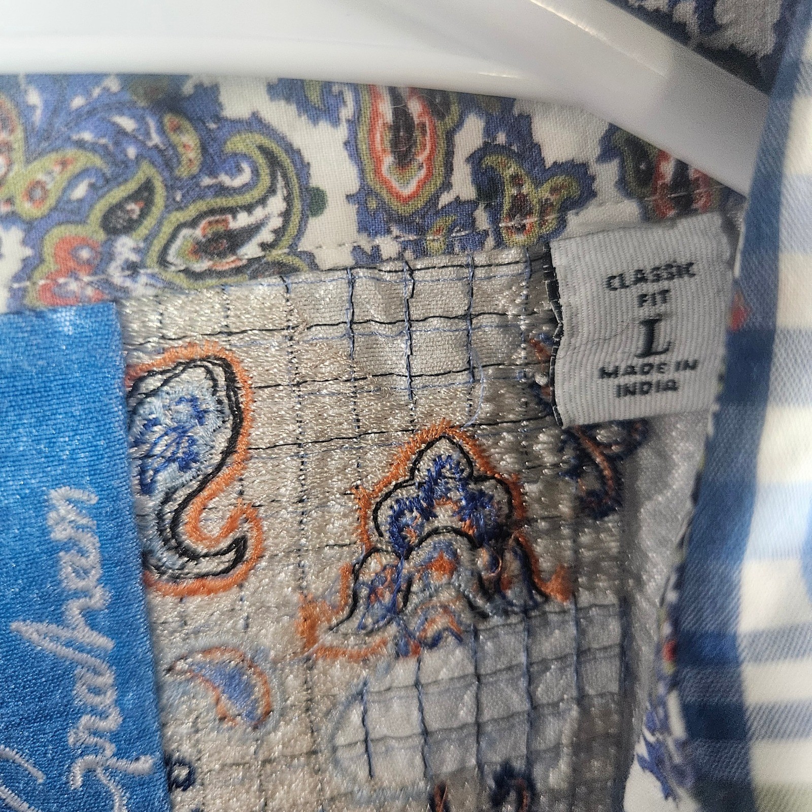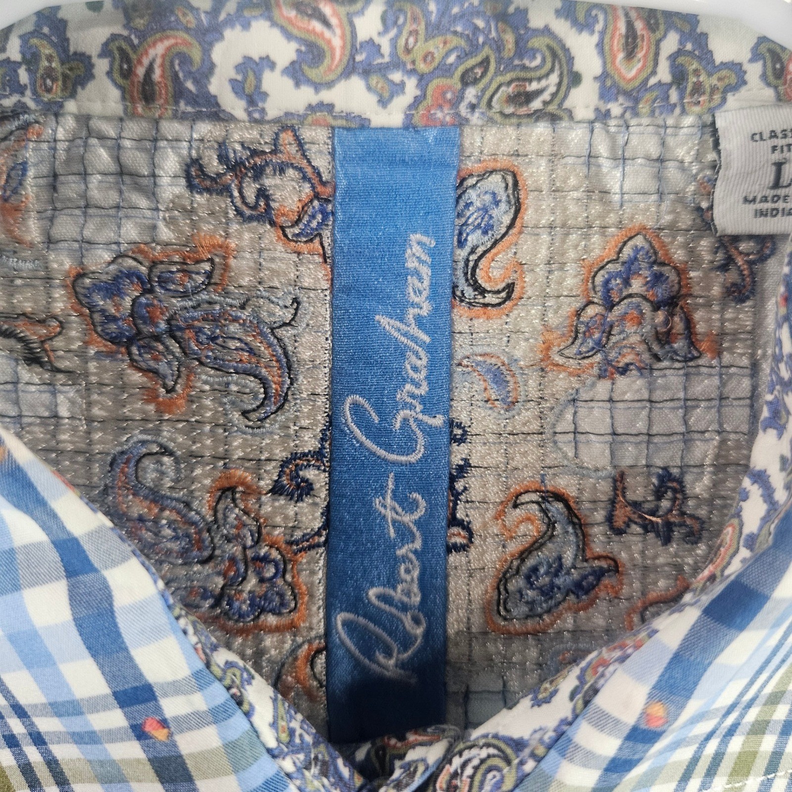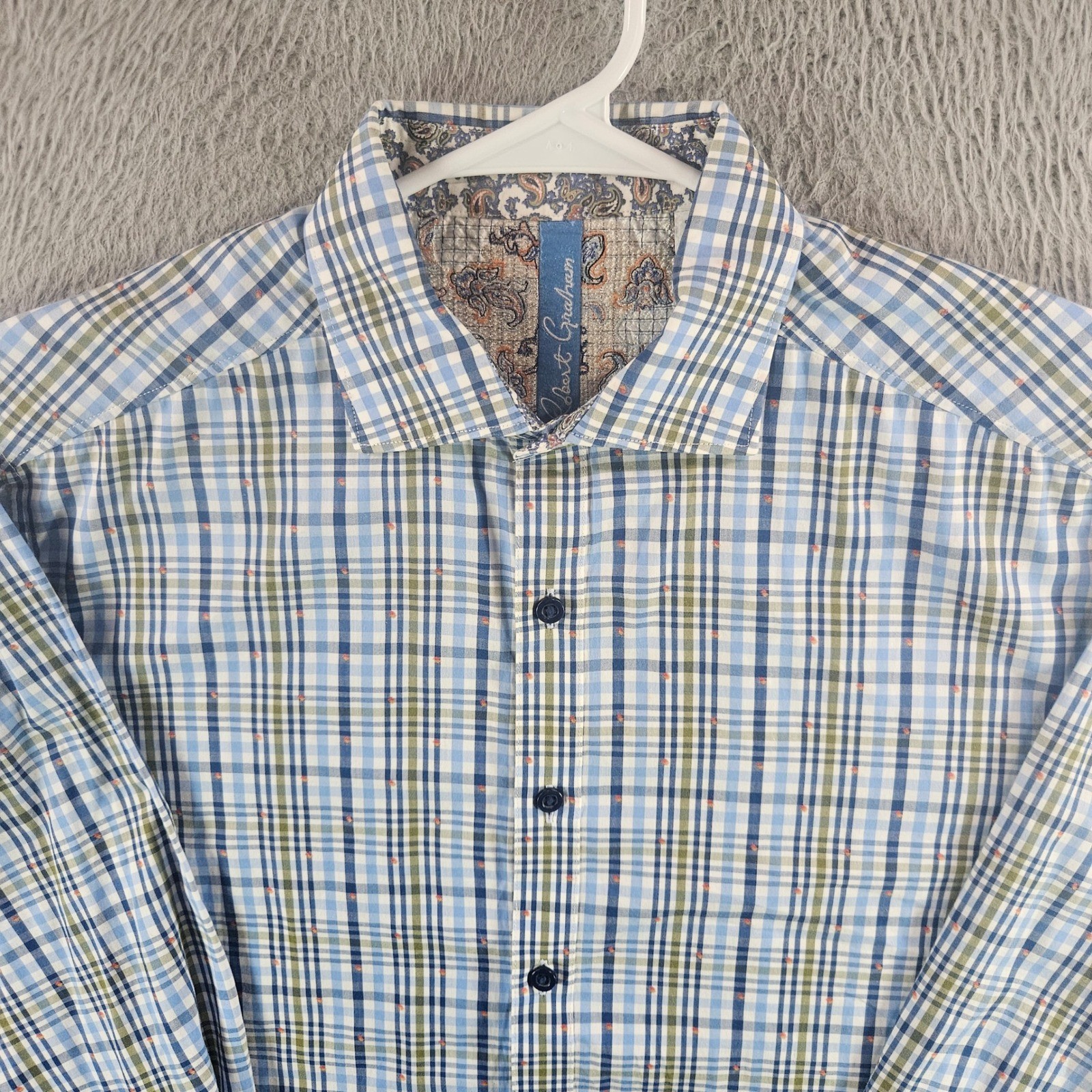 как выглядит Robert Graham Mens Classic Fit Plaid Button Down Shirt Blue Green Paisley L фото