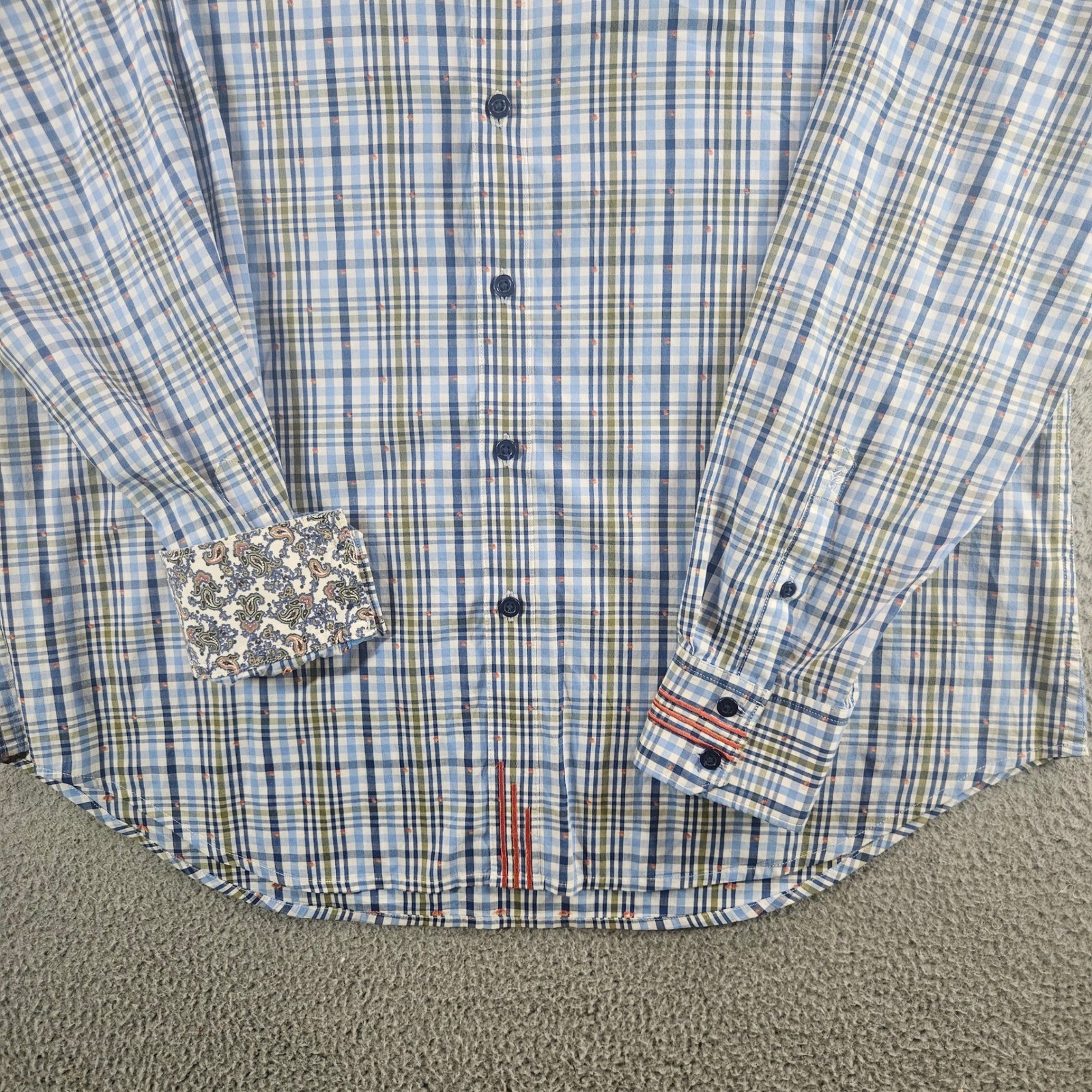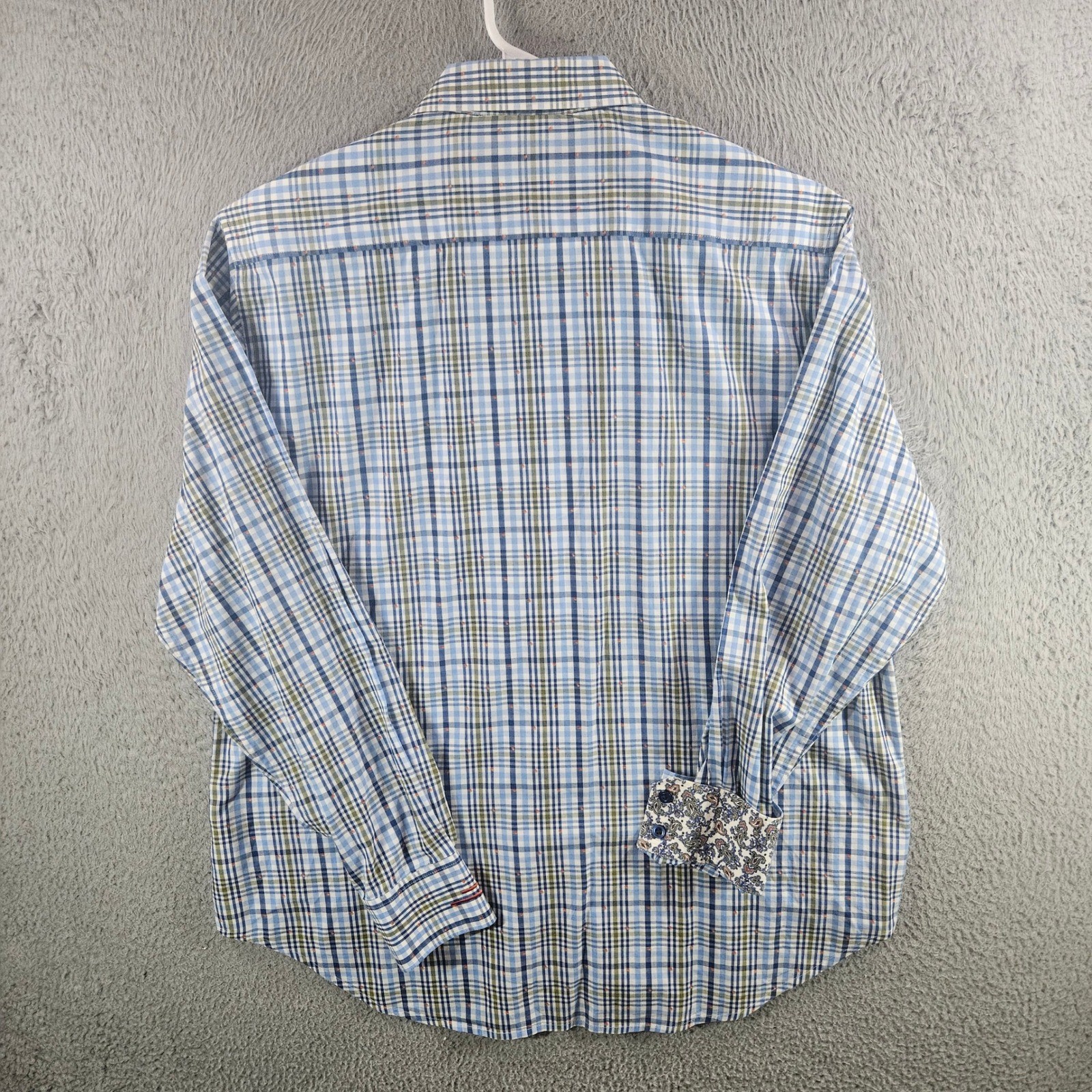 Robert Graham Mens Classic Fit Plaid Button Down Shirt Blue Green Paisley L