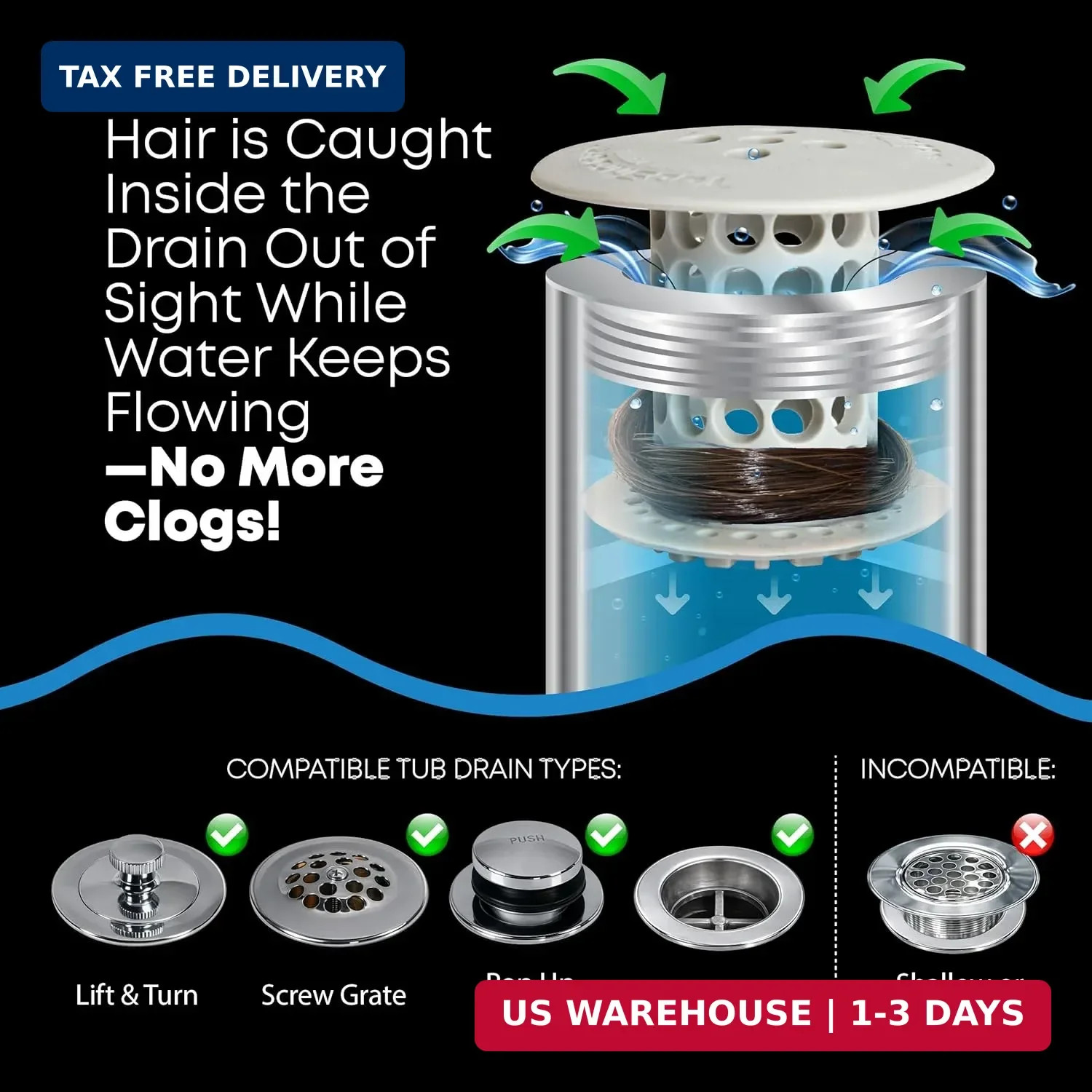 TubShroom Bathtub Drain Hair Catcher - in-Drain Tub Strainer Clog Prevention P