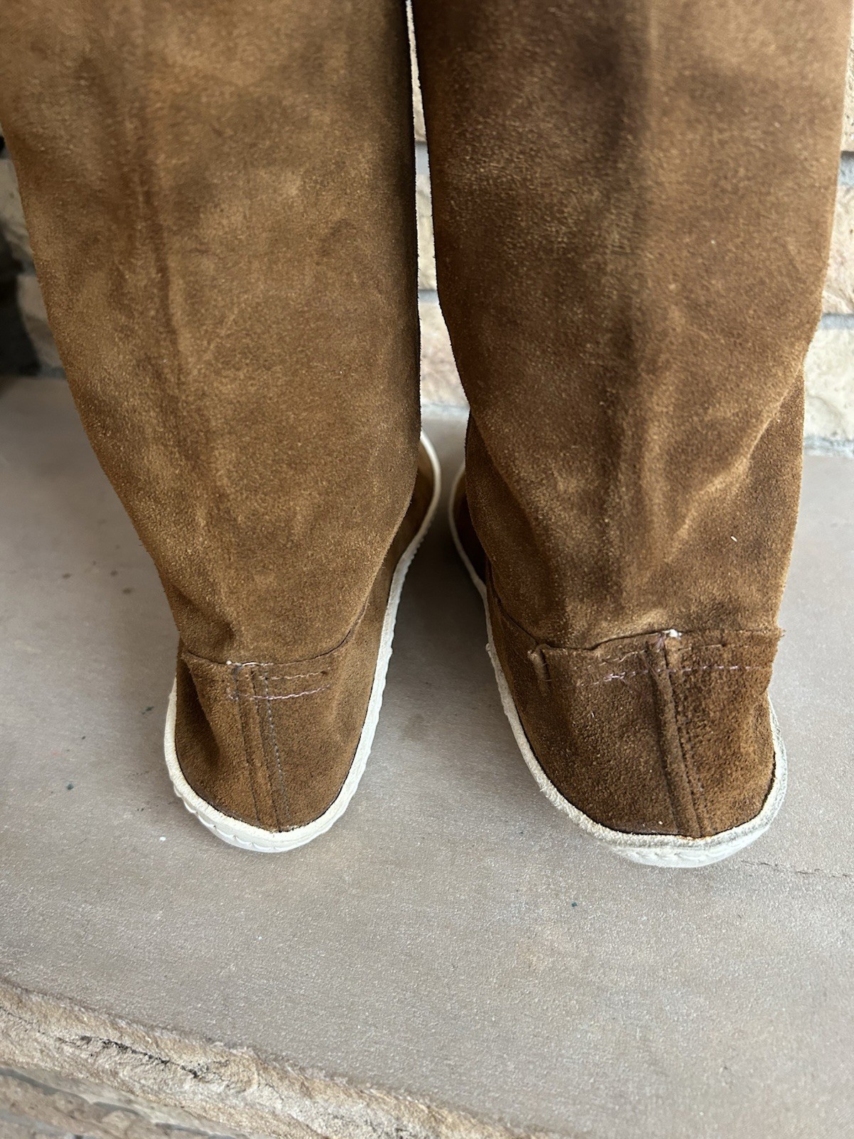 как выглядит Vintage Fringed Suede Moccasin Boots Womens Sz 9 Pull On Boho Festival фото