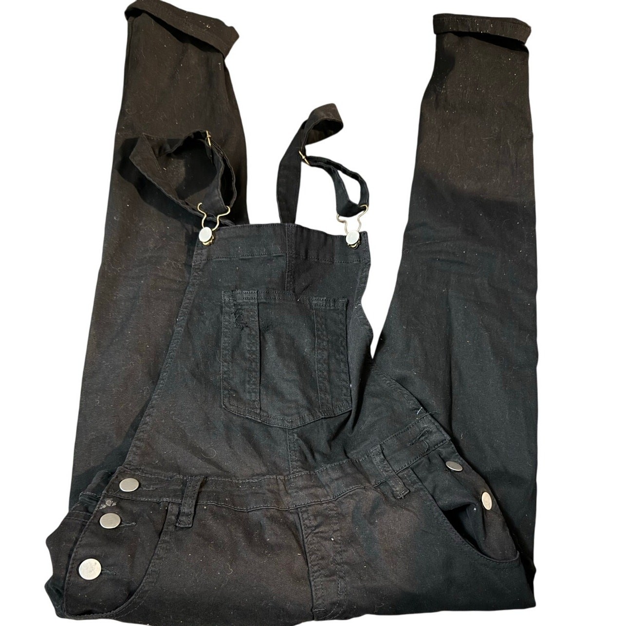 Superdown Gia Black Denim Overalls, Distressed, Women's Size Small