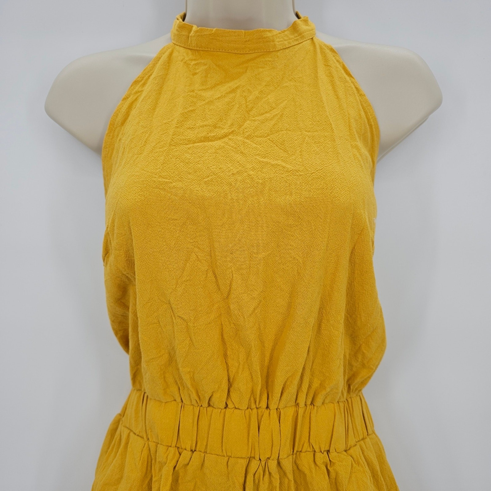 как выглядит Cupshe Womans size L Sunshine Yellow Halter Neck Tie Back Flared Leg Romper NEW фото