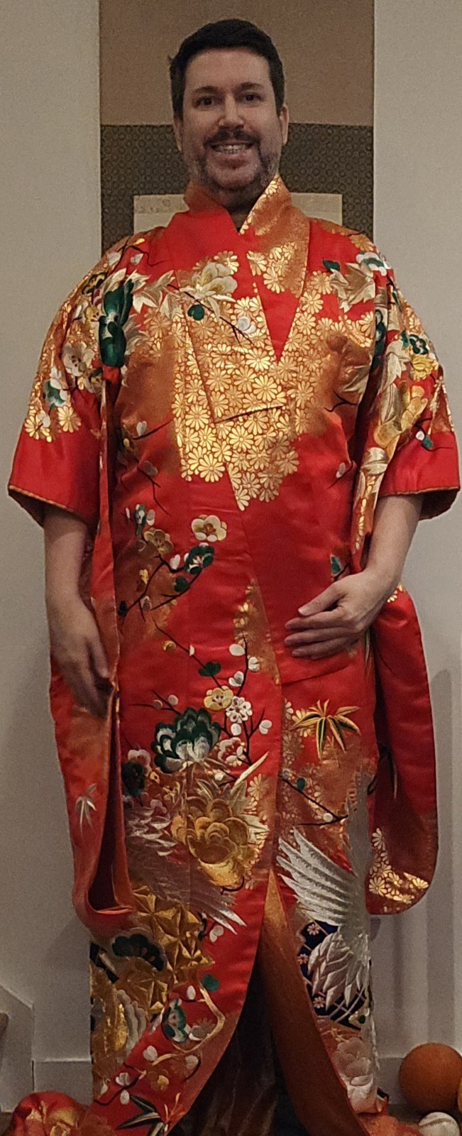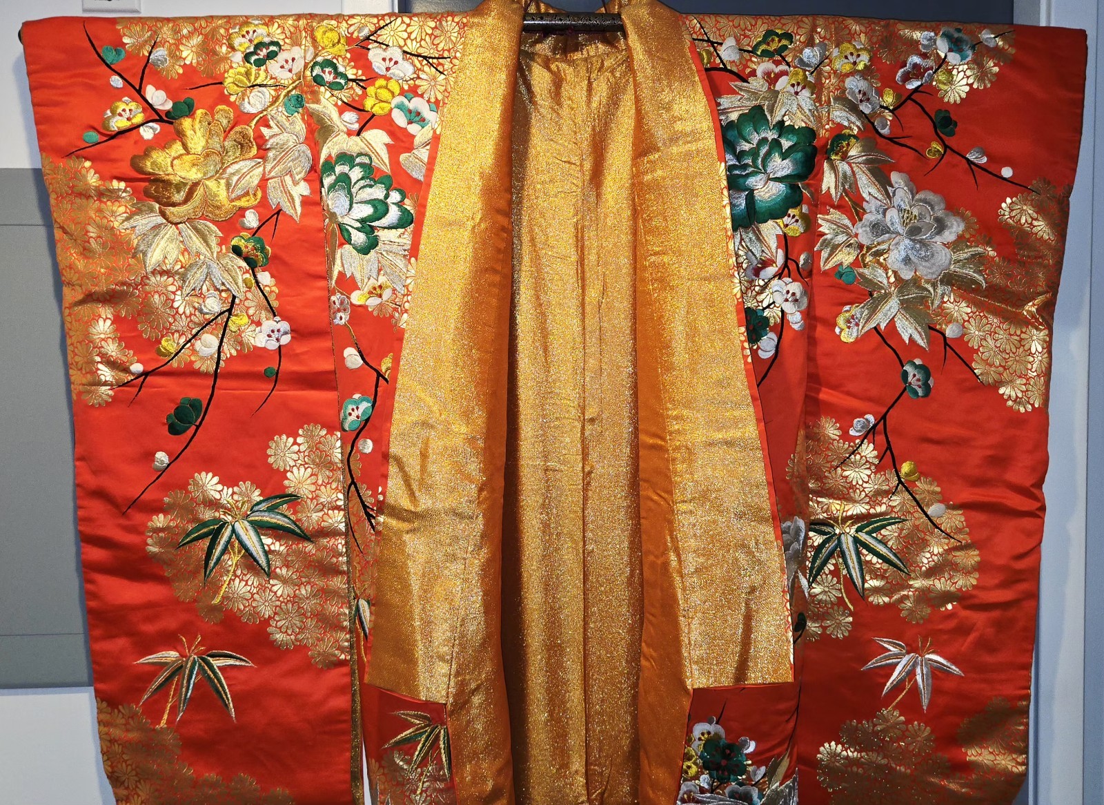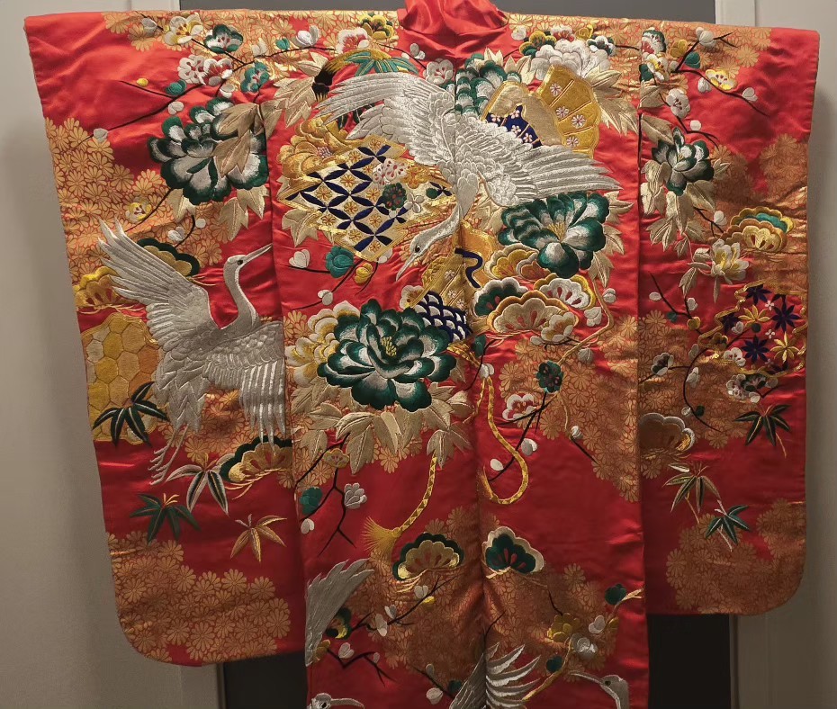Uchikake Hayashi Wedding Kimono Red Silk Crane Floral Tokyo, Japan Authentic