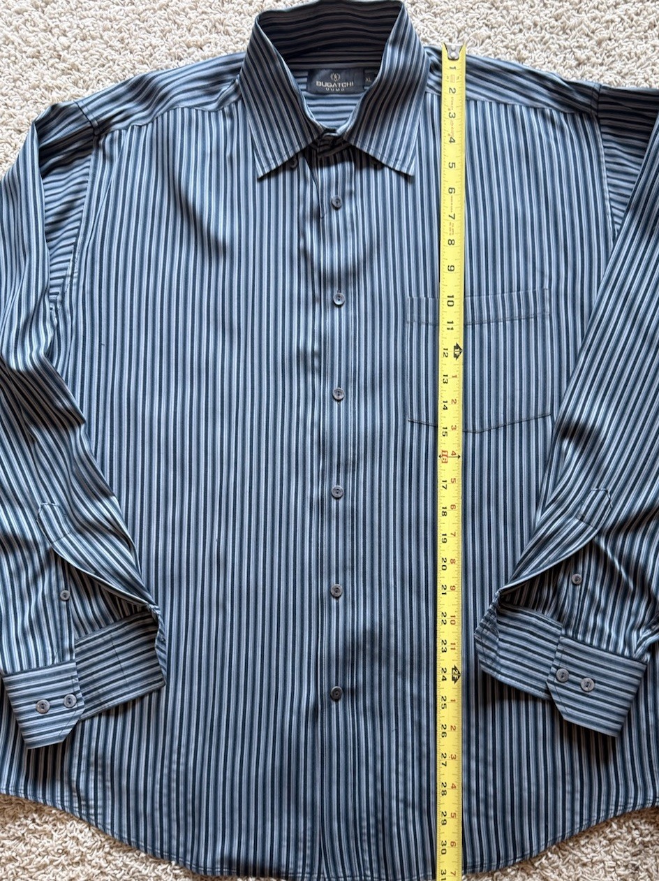 Men s Bugatchi Uomo Blue Striped Button Down Shirt Size XL