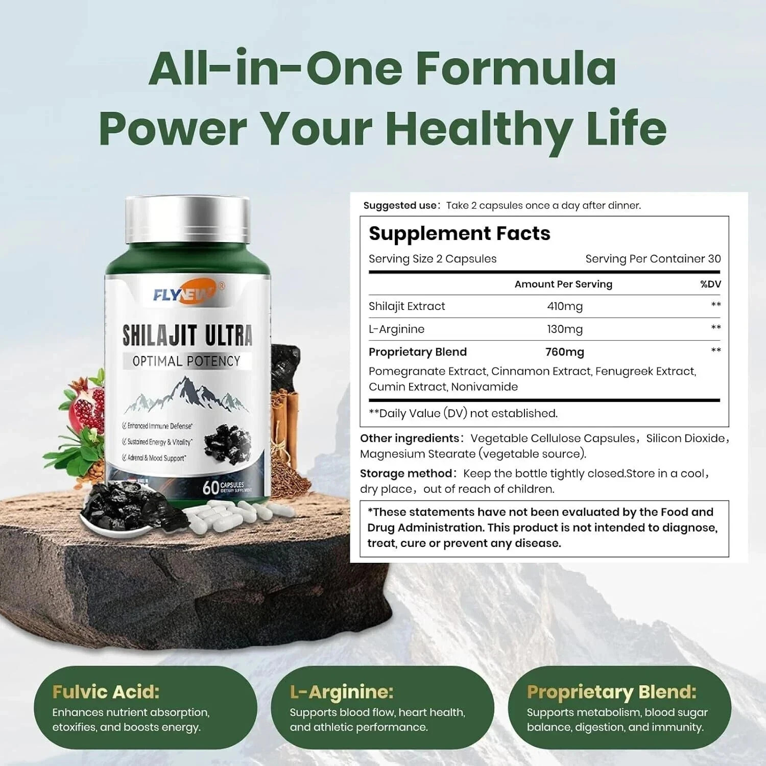 1 Pack Flynew Shilajit Ultra Optimal Potency, Shilajit Extract with L Arginine