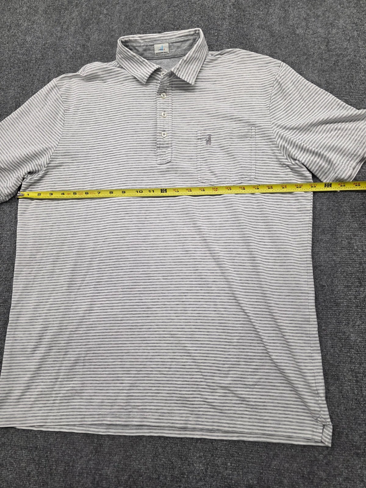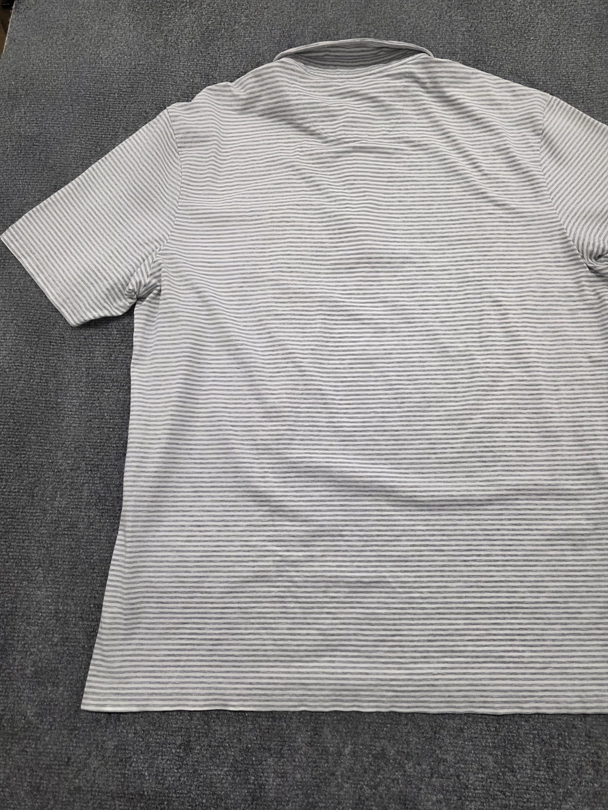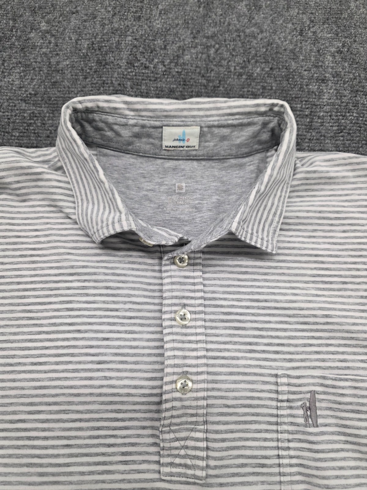 как выглядит Johnnie-O Hanging Out Mens Gray Striped Performance Stretch Polo Shirt XL фото