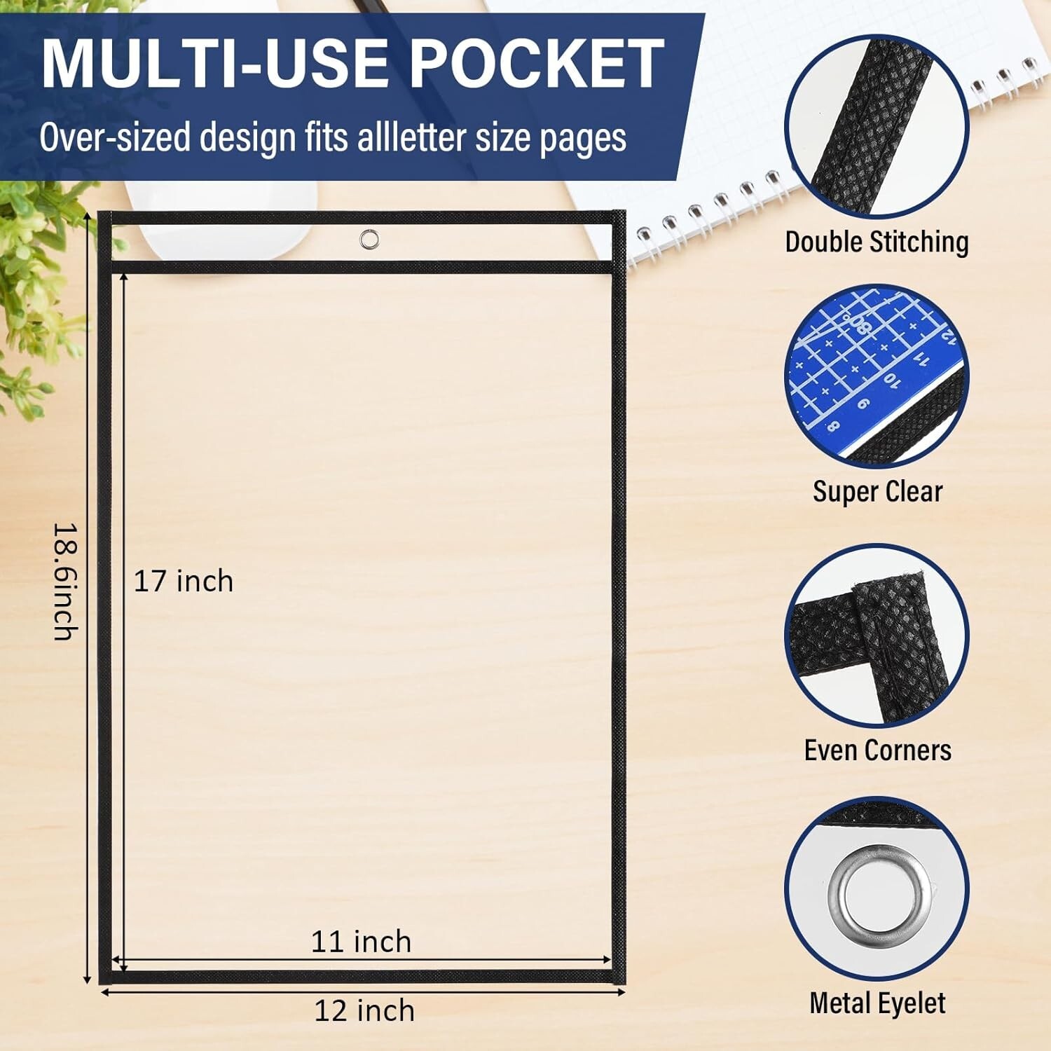 как выглядит 80 Pack Dry Erase Pockets Job Ticket Holders Black Clear Reusable Dry Erase S... фото