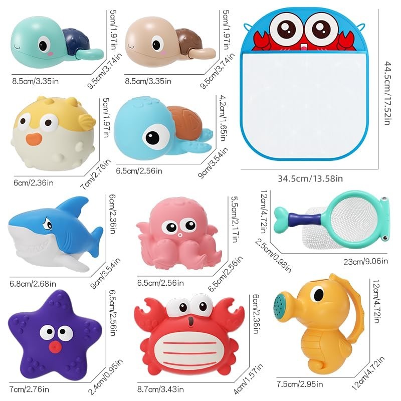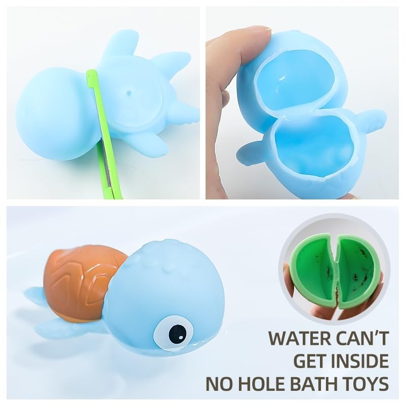 Fun Bath Toys for Toddlers 6-18 Months - No-Hole Floating Animals, Wind-Up Turtl
