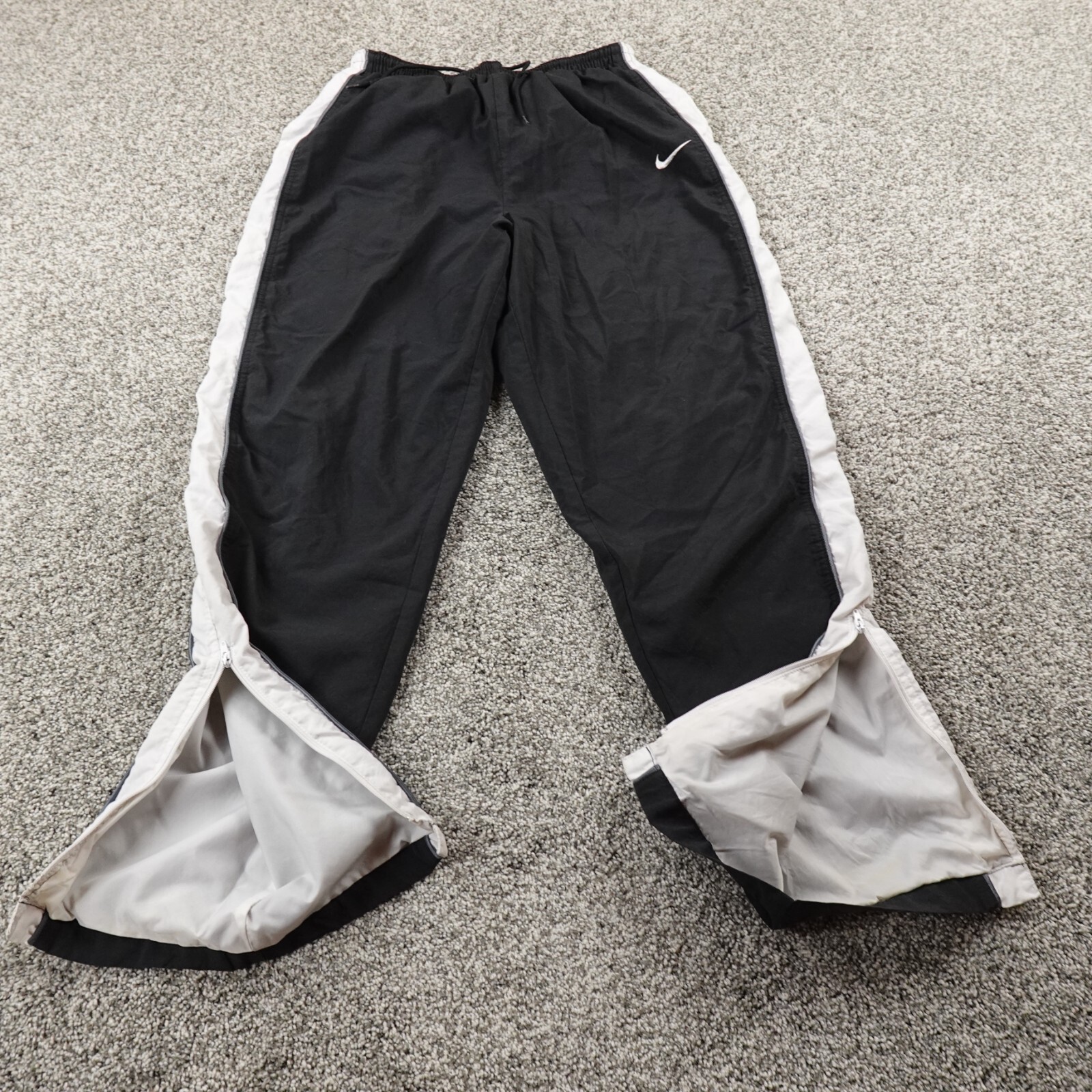 VTG Nike Pants Womens L Black Swoosh Zip Drawstring Track Windbreaker Jogger 90s